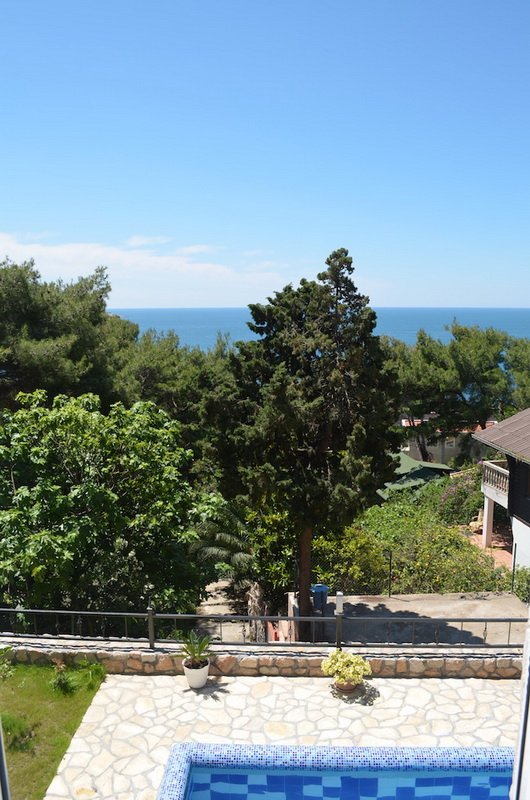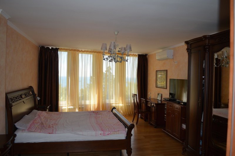 A three-storey villa in the heart of the Bar Riviera was designed according to the author"s project in accordance with modern trends in architecture and construction. In the external appearance of the building, traditional Montenegrin Mediterranean details are used - balconies-gallery and wide terraces. The facade of the house is made of high-quality red brick (comfort block), which ensures that the room maintains the optimal temperature at any time of the year. From all the rooms and terraces of the villa there is a fabulous view of the sea and mountain ranges. A large living room with dining area and fireplace, a fully equipped kitchen, 5 bedrooms, 3 bathrooms, as well as several utility areas and a wine cellar make this house ideal for a large and friendly family. The interior design of the villa is made in the fusion style that is popular today, combining Italian materials, as well as colors and textures traditional for the Mediterranean. The villa has a modern heating system (floor heating, radiators in living rooms). Furnishing and technical equipment of the premises (two plasma screens, leather furniture, built-in kitchen furniture, two refrigerators, seven air conditioners) includes not only everything necessary for a comfortable stay, but also leaves room for further decorative design, the possibility of subsequent additions to the interior. Also in the house on the third floor, where an independent staircase leads, there are four separate guest apartments, three of 40 sq. m and one 55 sq. m., each of which has a separate entrance, 2 cozy bedrooms, a bathroom, a kitchenette, as well as the necessary set of household appliances - satellite TV, refrigerator and air conditioning. The apartments can be used as a mini-hotel for 15-20 people. From all sides, the villa is surrounded by a Mediterranean garden, traditional for the Bar, with exotic plants. On the site there is a swimming pool, a sauna with a relaxation room, a huge Russian-style family barbecue (cauldron, barbecue and Russian oven), as well as parking for 5 cars. The beach with cozy cafes and small souvenir shops is a three-minute walk away.
