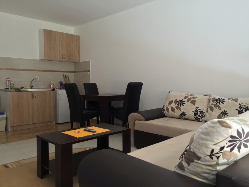 One bedroom apartment above the Jaz beach near Budva, Seoce district. Area 54 m2, consists of 1 bedroom with French bed, living room with kitchenette and terrace. The apartment is furnished. Located in a quiet area on a hill above Jaz Beach. 5 minutes to Budva, 15 minutes to Tivat airport