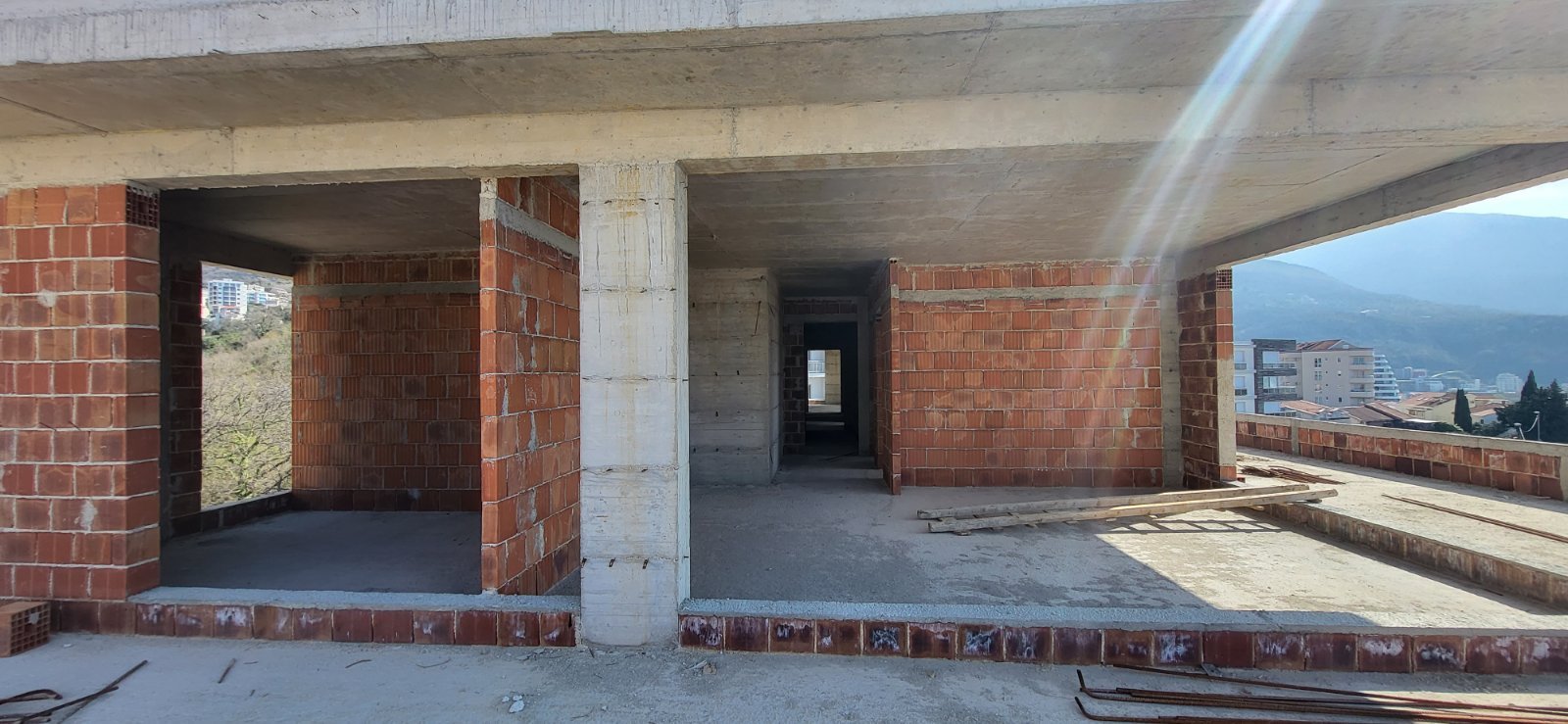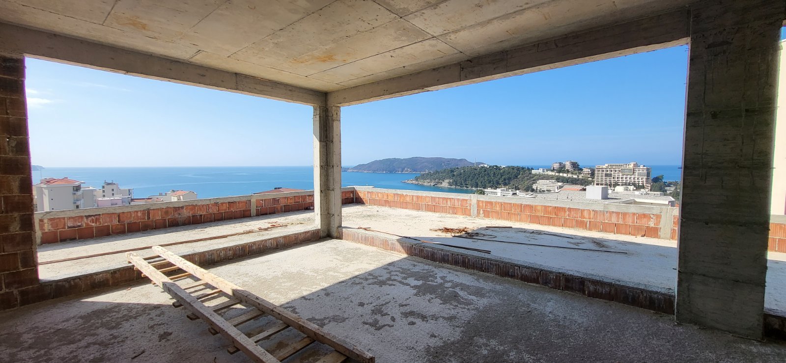 Spacious two bedroom penthouse 150m2 with a panoramic view and a large terrace in a new building in Bečići. The building is located a 5-minute walk from the sea. Penthouse structure: entrance hall, spacious living room with dining room, 2 bedrooms, 3 bathrooms, large panoramic terrace with sea view. Air conditioners will be installed in each room. Heated floors. The penthouse is currently under construction. The completion of all works is scheduled for the end of this year. Spacious three bedroom penthouse 250m2 with panoramic sea views and a large terrace, 3 bedrooms and 4 bathrooms at a price of 3,000e/m2.