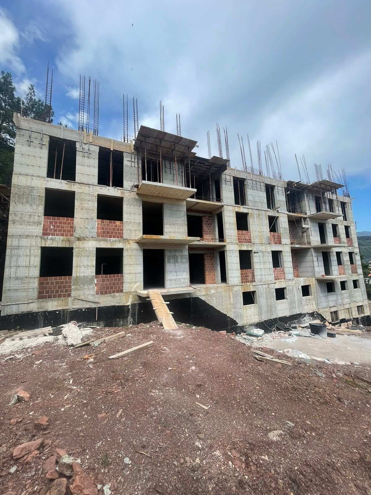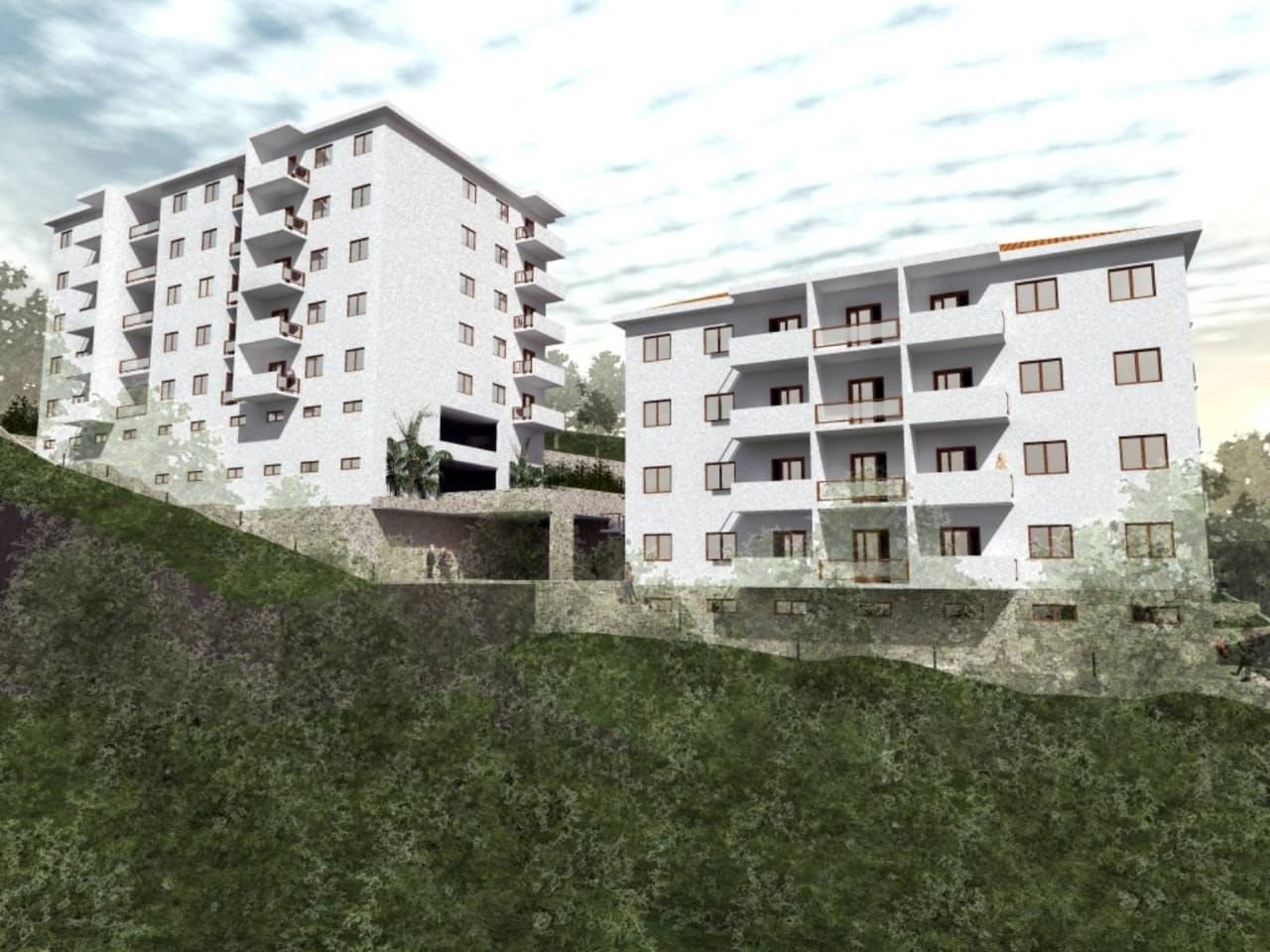 Two bedroom apartment in a new building in Petrovac. The area of the apartment is 75m2, located on the 2nd floor. Consists of 2 bedrooms, living room with kitchen, bathroom and toilet, corridor, storage room and balcony. The balcony has a sea view. Garage space for sale separately, €15,000. The apartment offers a view of Petrovac and the coast, 950 meters from the sea. The delivery of the house is planned for the end of July 2023.