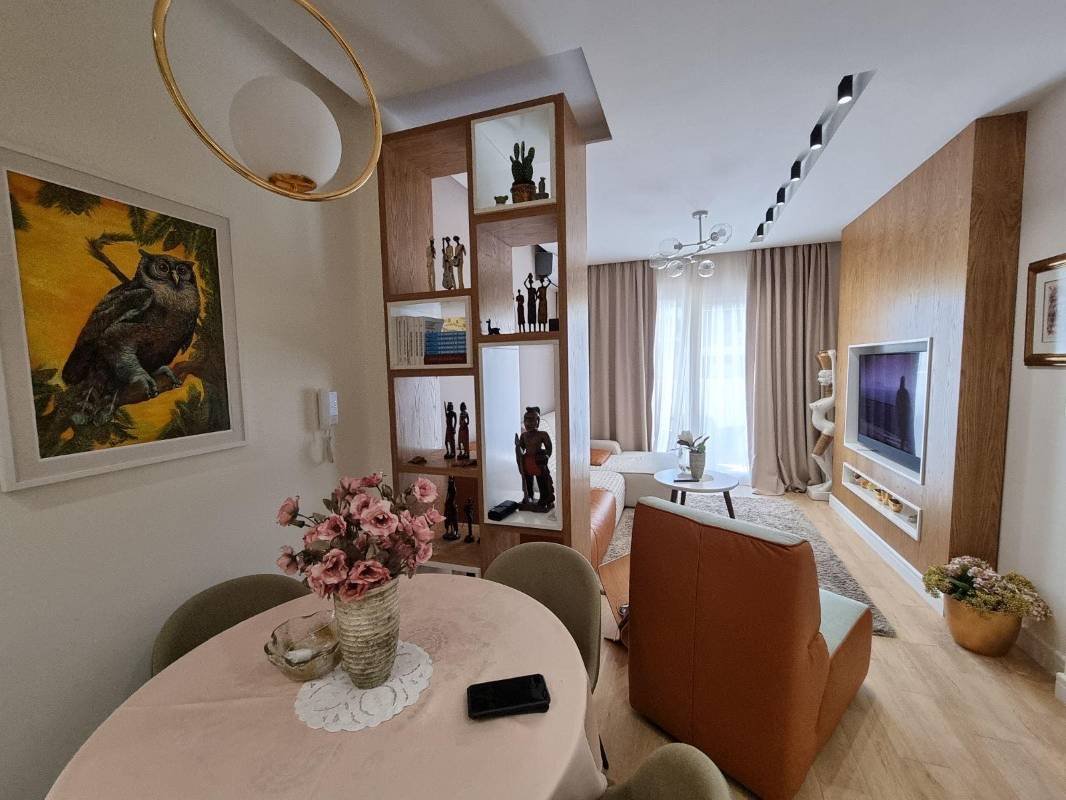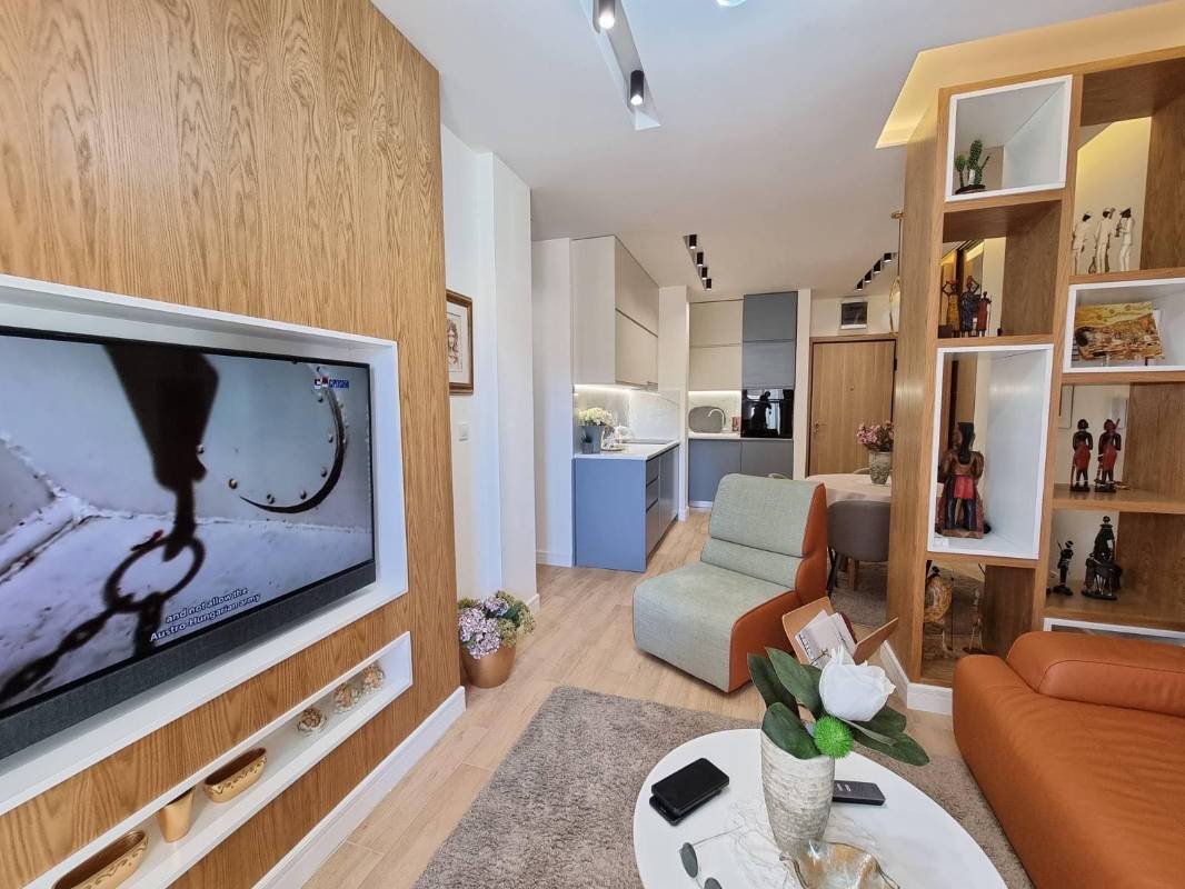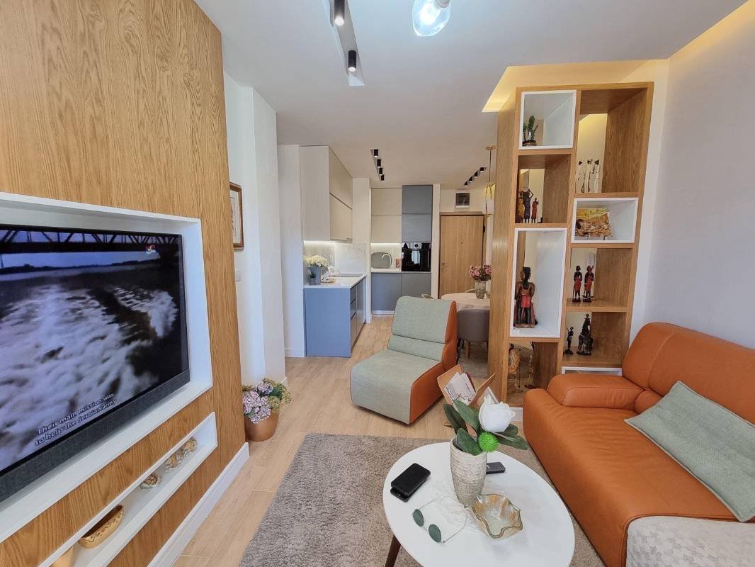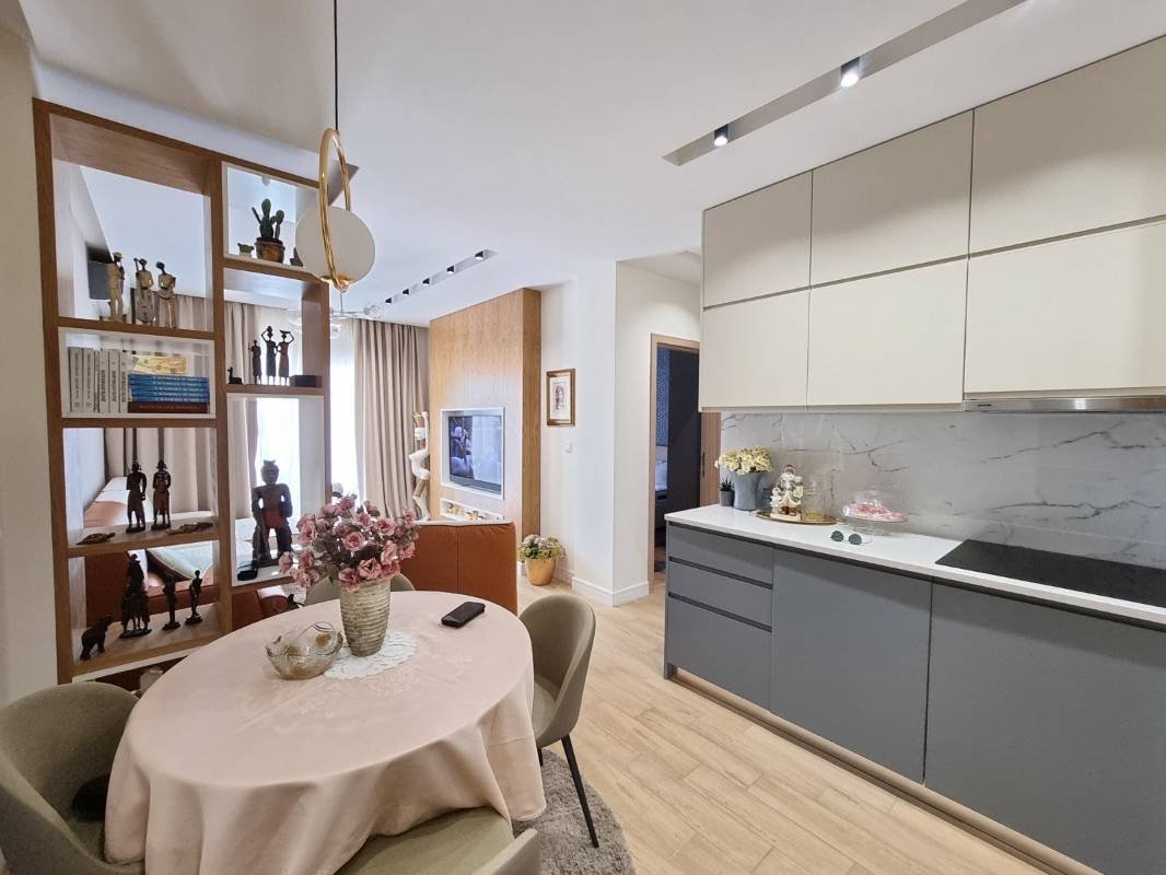 Stylish highlighted one-bedroom apartment in the center of Budva in the Old Bakery residential complex. The apartment is located on the 2nd floor, the area of the apartment is 47 m2. Consists of 1 bedroom, living room with designer kitchen, bathroom and balcony, dressing room. The apartment is for sale fully furnished, new kitchen set to order with built-in appliances. The complex is located 7-10 minutes walk from the Budva embankment, close to all urban infrastructure. Inside the complexis a Mega supermarket, cafes and bars.