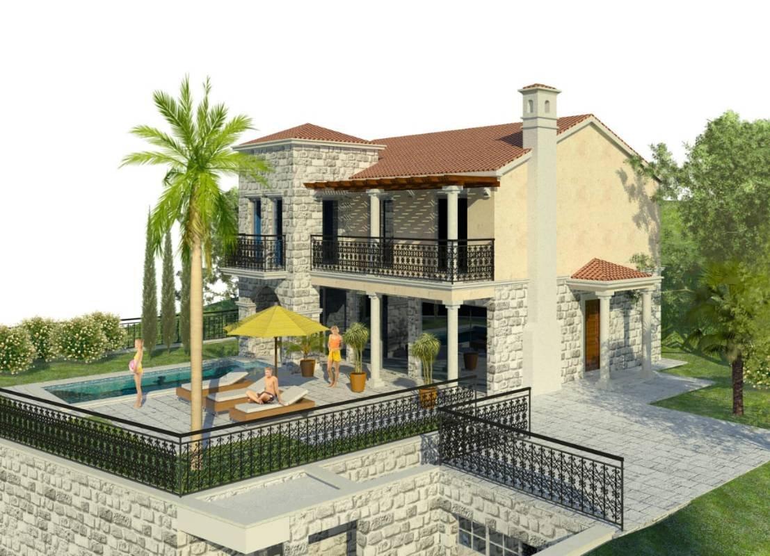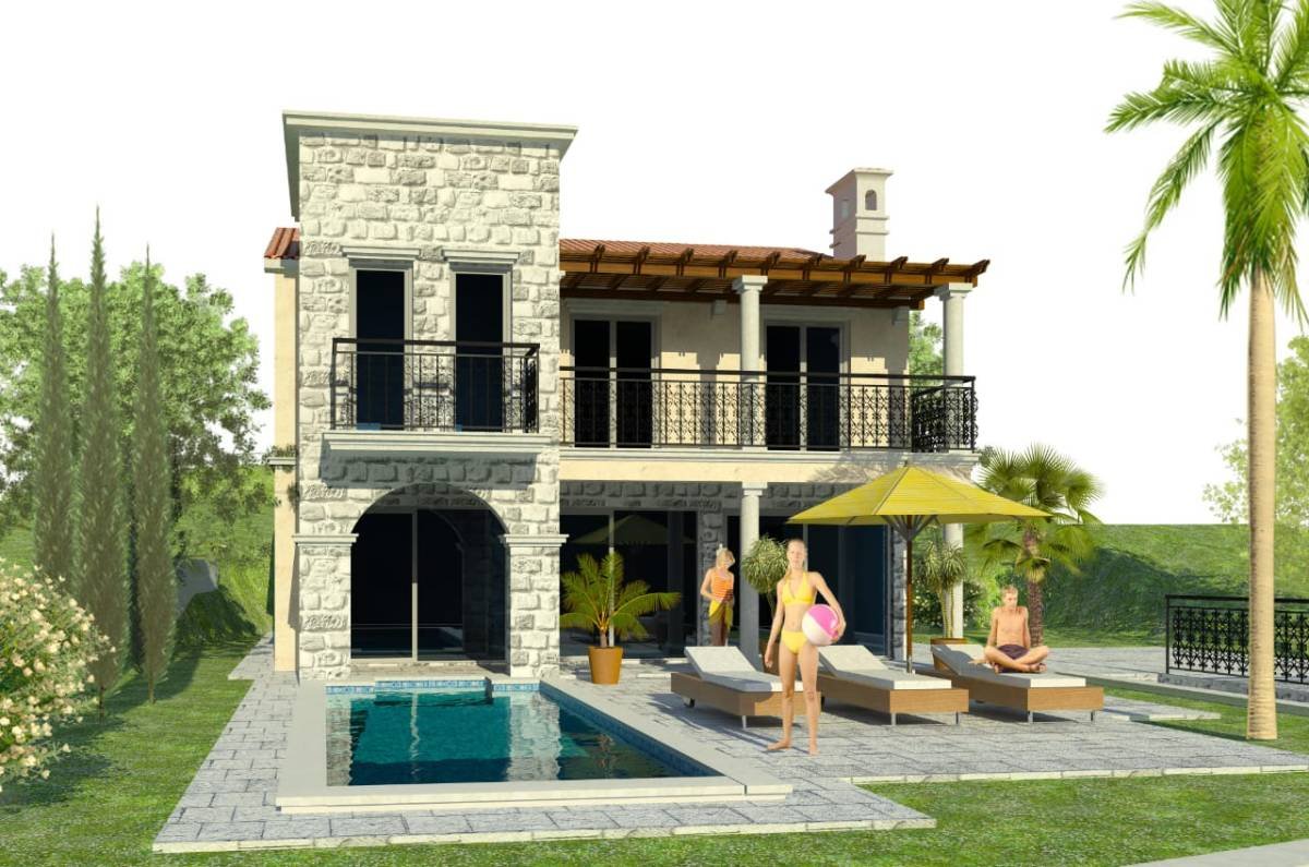Villa for sale under construction in Ivanovići. The villa has 190 m2 + garage 36 m2 + closed terrace 15 m2 with a total area of 241 m2. The villa consists of: 3 bedrooms, 3 bathrooms, living room with kitchen and cabinet. According to the project, there is a 3×8 m swimming pool. And also a fireplace. Plot area 485m2. There are fruit trees on the property. The villa has a sea view. With completion according to the turnkey system, the price is 700,000 euros. There is a special price of the villa under consrtaction 735,000 euros until 15.07.23!
