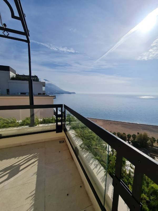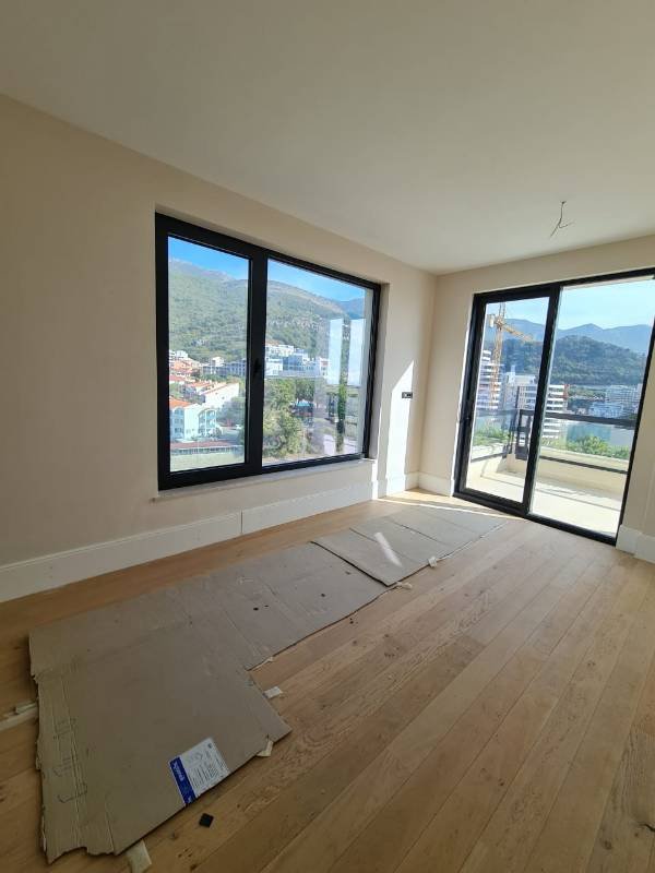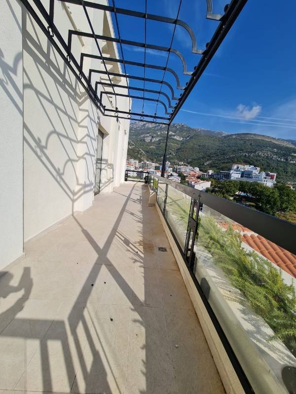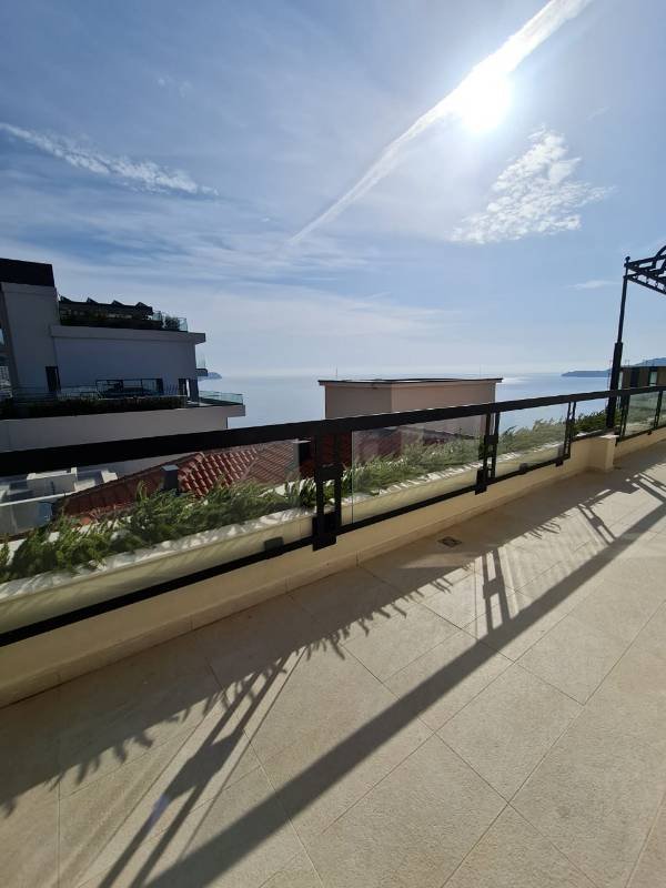 Two-room apartment with sea view and swimming pool in Becici. The area of 113 m2 consists of 2 bedrooms, a living room with a kitchen, a terrace with panoramic windows and a sea view. The complex has a swimming pool, spa complex, gym, parking. To Budva 3 minutes, to the sea and the promenade 100 meters.