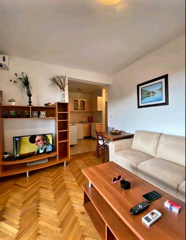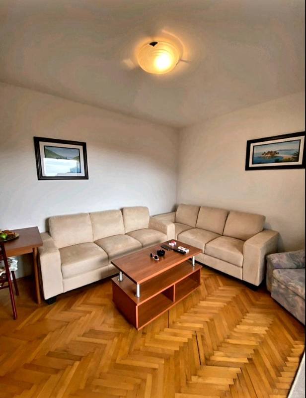 Two bedroom apartment for one year in Budva at a very good price! The 70m2 apartment is located on the 3rd floor in a building without an elevator. Pets are allowed. The apartment has: 2 bedrooms, living room with kitchen and dining room, bathroom, terrace. There is a public parking lot near the building. Price €600 per month. Paid in advance: 1 month + 2 last and deposit. The client pays only electricity and internet and cable TV. The other is paid by the apartment owner. Location: Mainska Street across from Mega Market.