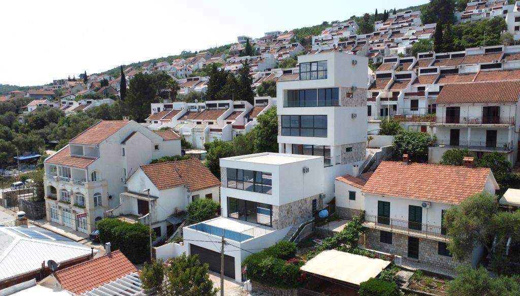New villa with a swimming pool in Tivat, Krasici. Sea view from every room! Krasici is a calm, quiet corner with beautiful sea views, ideal for those who want to escape from the hustle and bustle of the city. The villas are located 10 meters from the beach. Each room has panoramic views of the sea and mountains. The interior features an original design with a set of several lighting scenarios. The decoration uses Italian ceramic tiles of the highest quality, climate control and ventilation systems, heated floors, and fireplaces are installed. The villas are equipped with a full range of sanitary ware from Hansgrohe and Villeroy & Boch. The villa has its own swimming pool. Thermal insulation solutions were used in the construction of the building, which creates comfort and energy efficiency. Warm-profile double-glazed windows of the Sсhuсo brand were installed. The building is connected to cable Internet and the entire perimeter is under video surveillance. Villa 1 has an area of 200 m2 and a plot area of 330 m2 The villa has 2 bedrooms, 2 bathrooms, a spacious living room with access to a private pool, panoramic sea views. Own garage for 2 parking spaces. Cost 530,000 euro Villa 2 has an area of 315 m2 and a plot area of 450 m2 The villa has 3 bedrooms, 4 bathrooms, a spacious living room with a kitchen and a terrace overlooking the sea, a relaxation area with access to a private pool, a relaxation floor with a billiard room, a sauna and a spacious terrace with a unique panoramic view of the sea. The villa has outdoor parking at the entrance. Cost 750,000 euro
