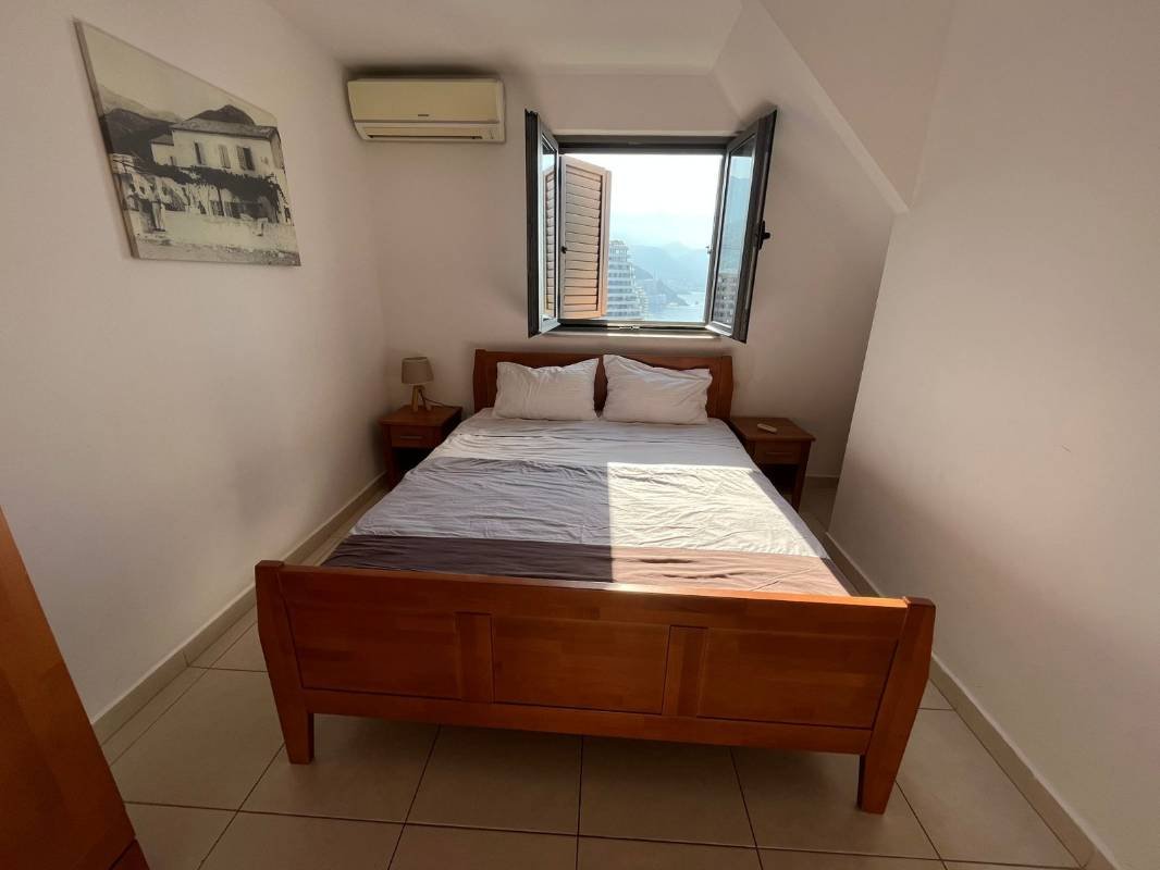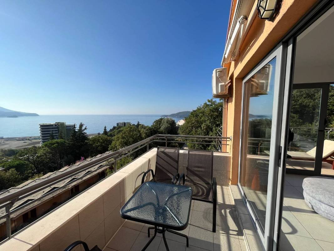 Two bedroom sea view apartment with two garage spaces in Becici