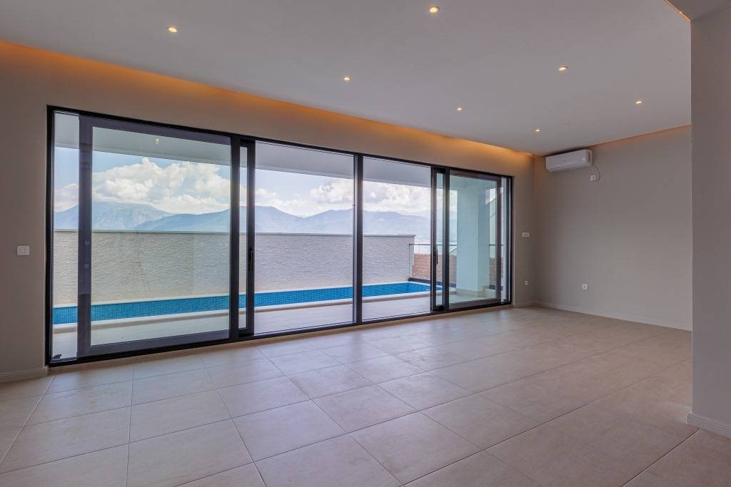 New villa with a swimming pool in Tivat, Krasici. Sea view from every room! Krasici is a calm, quiet corner with beautiful sea views, ideal for those who want to escape from the hustle and bustle of the city. The villas are located 10 meters from the beach. Each room has panoramic views of the sea and mountains. The interior features an original design with a set of several lighting scenarios. The decoration uses Italian ceramic tiles of the highest quality, climate control and ventilation systems, heated floors, and fireplaces are installed. The villas are equipped with a full range of sanitary ware from Hansgrohe and Villeroy & Boch. The villa has its own swimming pool. Thermal insulation solutions were used in the construction of the building, which creates comfort and energy efficiency. Warm-profile double-glazed windows of the Sсhuсo brand were installed. The building is connected to cable Internet and the entire perimeter is under video surveillance. Villa 1 has an area of 200 m2 and a plot area of 330 m2 The villa has 2 bedrooms, 2 bathrooms, a spacious living room with access to a private pool, panoramic sea views. Own garage for 2 parking spaces. Cost 530,000 euro Villa 2 has an area of 315 m2 and a plot area of 450 m2 The villa has 3 bedrooms, 4 bathrooms, a spacious living room with a kitchen and a terrace overlooking the sea, a relaxation area with access to a private pool, a relaxation floor with a billiard room, a sauna and a spacious terrace with a unique panoramic view of the sea. The villa has outdoor parking at the entrance. Cost 750,000 euro