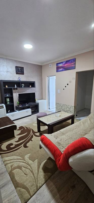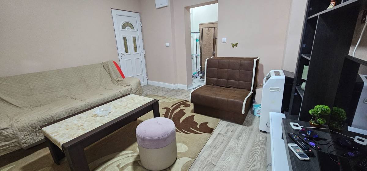 Renovated one-room apartment in Budva from February for a year! The area of 40 m2 consists of a living room with kitchen, bedroom, large terrace and bathroom. Located in Budva, Golubovina district, 5 minutes walk from the bus station and the health center, next to the Mega Market, there are many free parking spaces near the building. Furnished with air conditioning, large folding sofa and bed, balcony view pets allowed.For long term rent, payment 450€+450€+450€ deposit