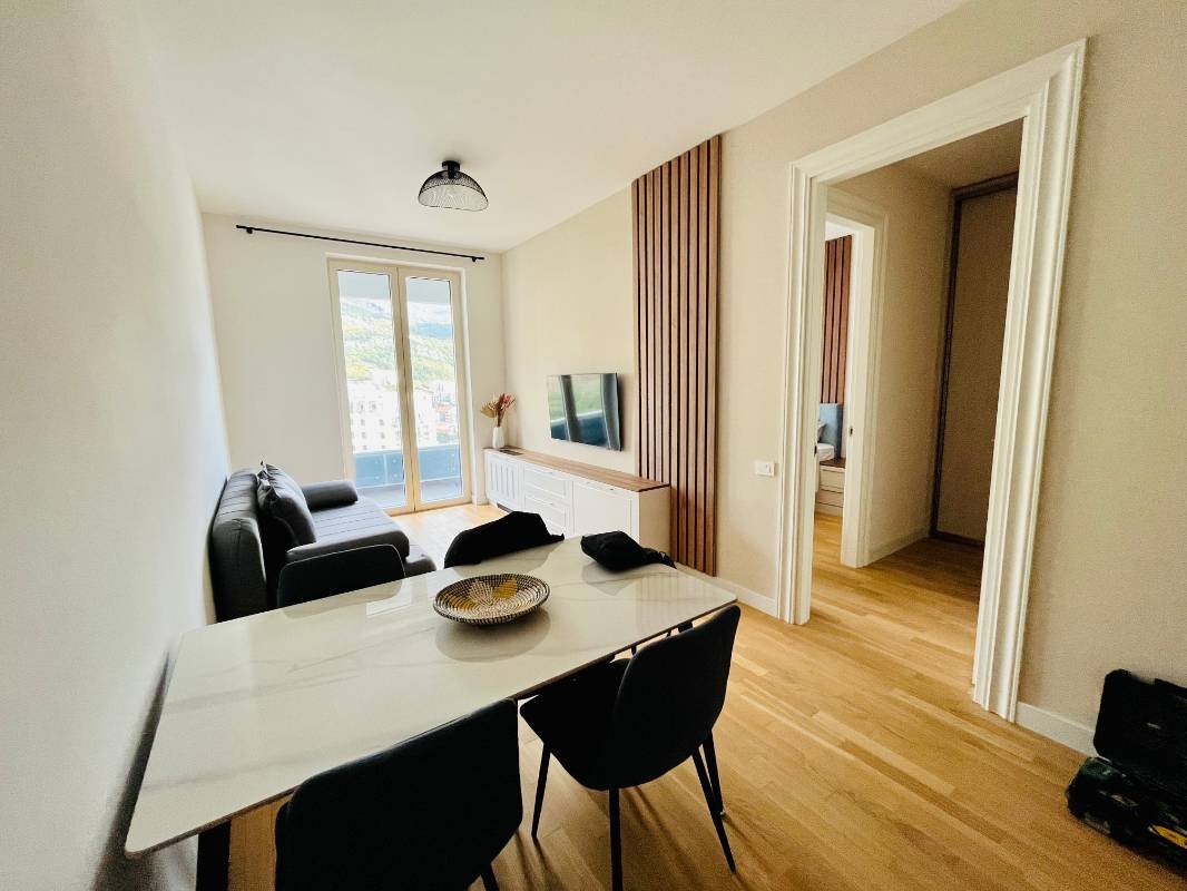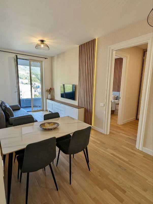 Two bedroom apartment with sea views in a complex with an Infinity pool in Becici! The total area is 66 m2, consists of a living room with kitchen and dining area, 2 bedrooms, 2 bathrooms, dressing room, spacious terrace (exit from all rooms) overlooking the sea. No one lived in the apartment, it was modernly renovated using expensive materials, fully furnished and with household appliances. The complex offers exceptional amenities, including an outdoor Infinity pool, a spa complex with an indoor pool, 3 Russian, Finnish, Swedish saunas, a gym, a restaurant and is part of a luxury 5* hotel.Becici Beach - blue flag for cleanliness, is located 250 meters from the complex, built on a rock, offering a breathtaking view of the Budva Riviera!