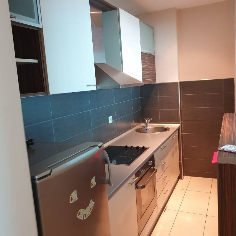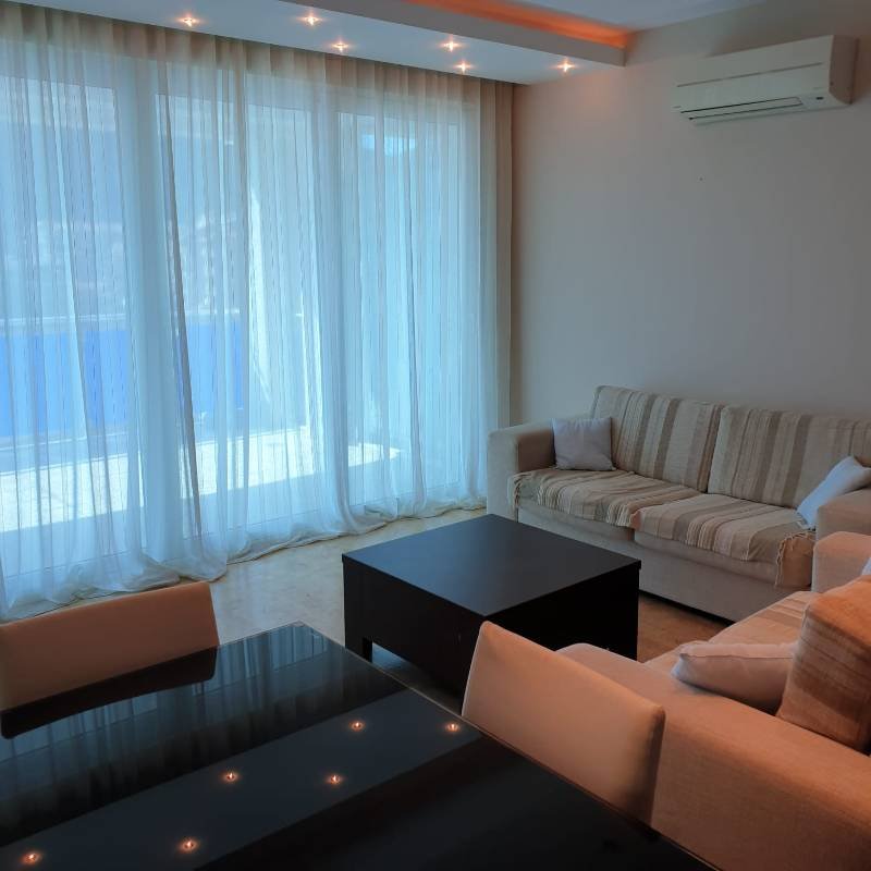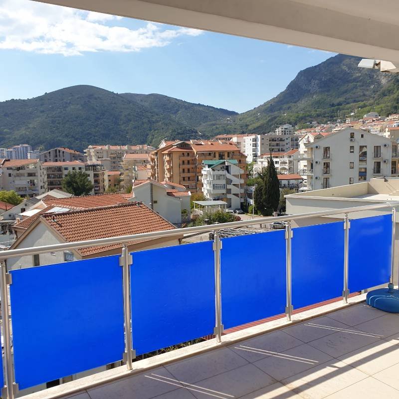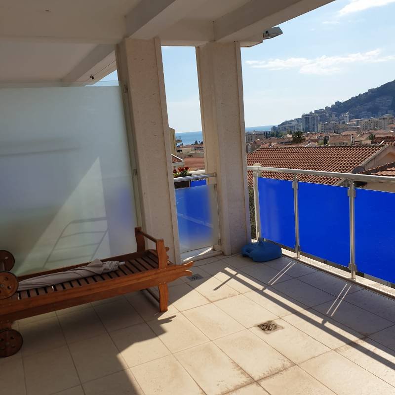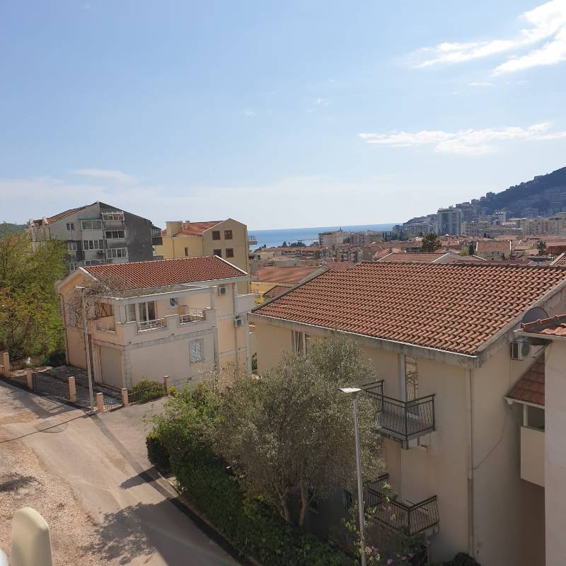 Two bedroom apartment with a garage in Budva. The apartment is located on the second floor of the building. The building does not have an elevator. Area 74m2 + terrace: living room with dining area, separate kitchen, 2 bedrooms, bathroom. The terrace offers panoramic views of the city, sea and mountains. The apartment is fully furnished, equipped with underfloor heating and everything you need for a comfortable stay.The price of the garage is 25,000 euros, it is paid additionally.