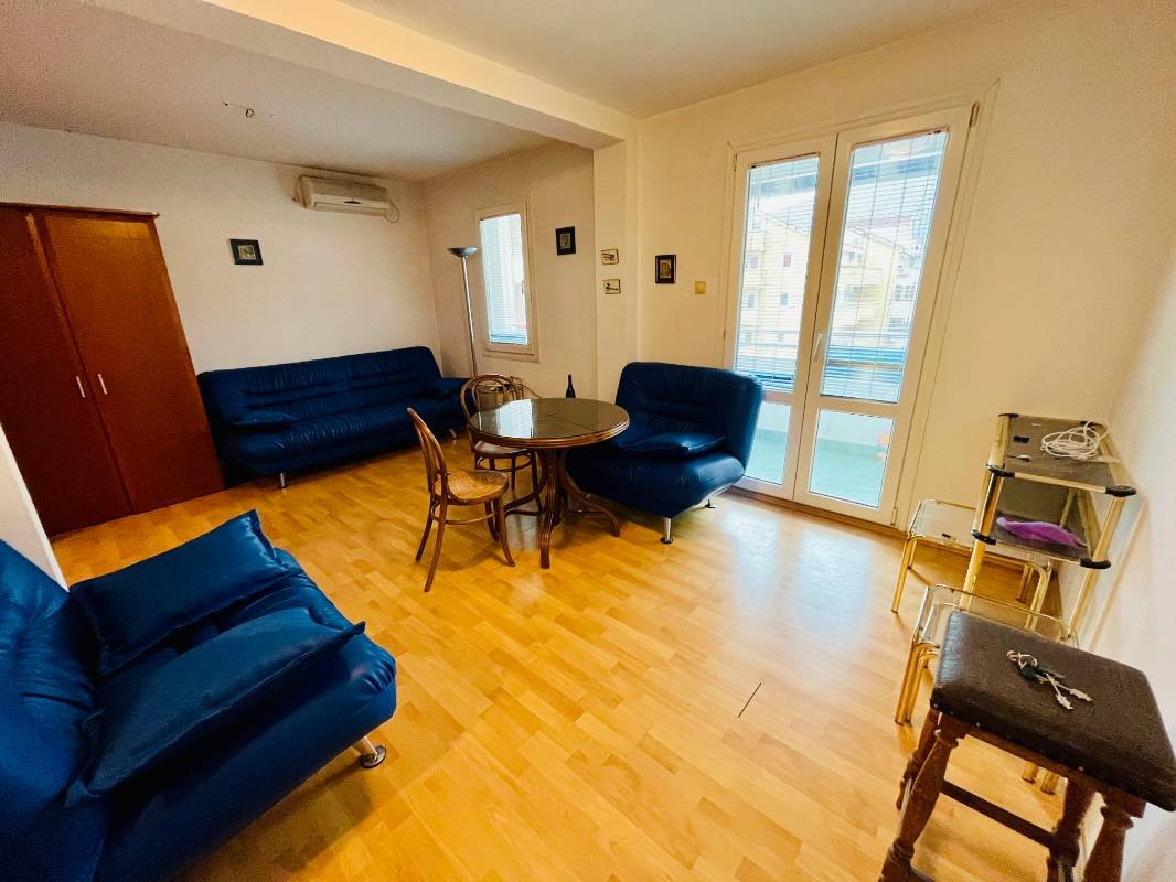 A bright and cozy 43 sq m apartment in the heart of Budva just 600 meters to the sea! It features a separate bedroom, a spacious living room with an open-plan kitchen, and a sunny terrace perfect for relaxing any time of day. Long-term rental available for one year.