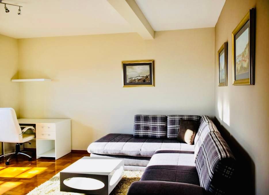 One-room apartment with parking and sea views in Petrovac! The area of 51 m2 consists of a living room with kitchenette, bedroom, bathroom and balcony overlooking the sea. Furnished, the bathroom has a modern shower, well-kept building, parquet flooring, large Beko refrigerator. Dry apartment, southwest orientation. Located in Petrovac, 15 minutes walk from the sea, next to the bus station, quiet and peaceful place. The building is well maintained and clean. Budva is 20 minutes by car, there is a school and kindergarten in Petrovac. A place for lovers of a quiet life!