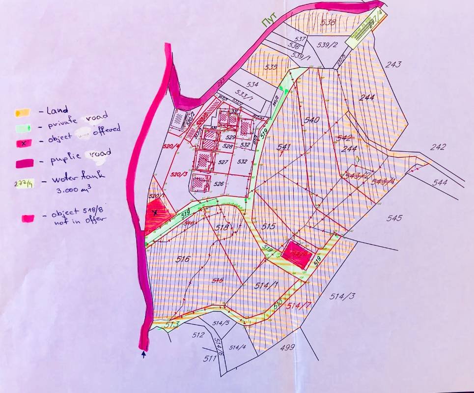 For sale is a hotel complex with an ideological solution for the construction of 20,000 m2 in Lastva Grbaljska. The complex is located on a plot of about 25,000 m2, at an altitude of about 60 m above sea level, which allows for panoramic views of the mountains and the sea. The distance from Jaz beach is 2 km, from the city of Budva 7 km, from Tivat airport 17 km.