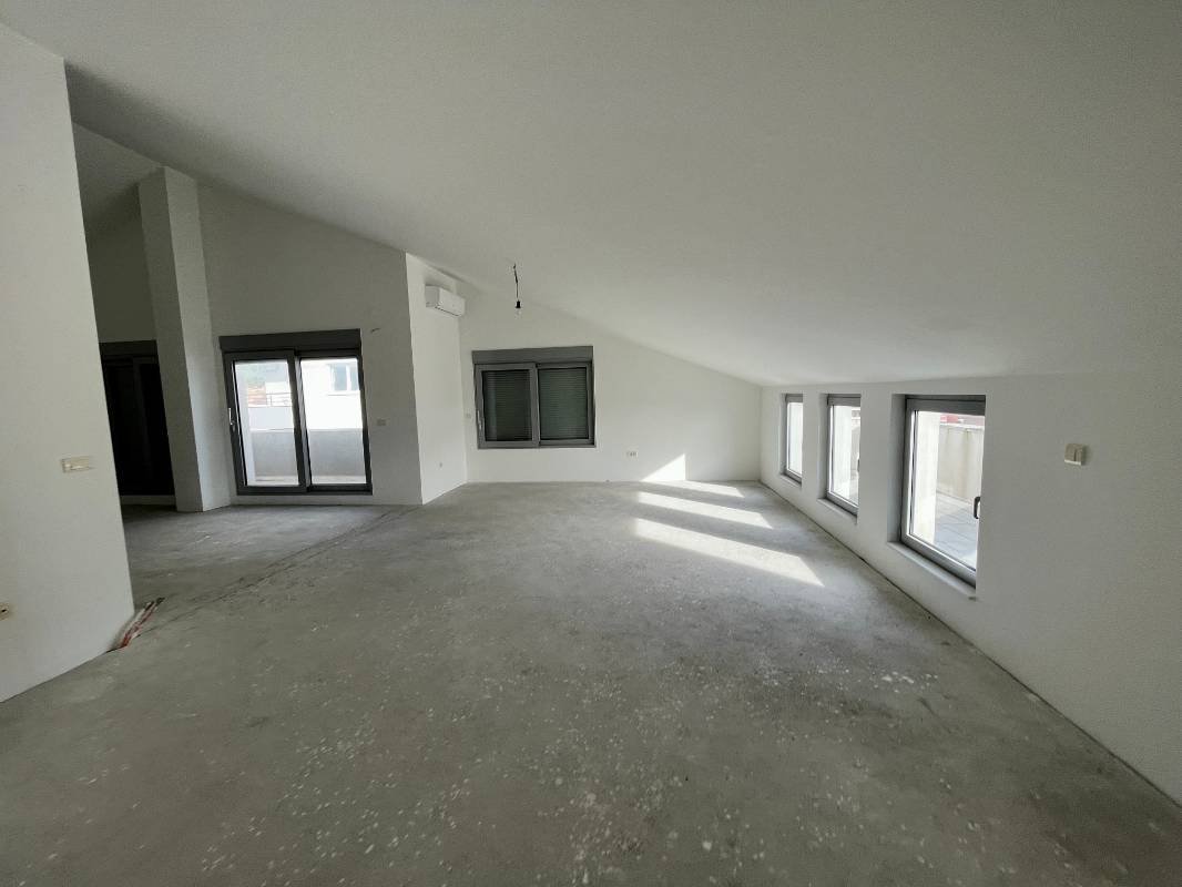 Penthouse with sea views in a new building in the Rozino area of Budva! An area of 236 m2 consists of a kitchen with a dining area, a spacious living room, 3 bedrooms, 4 terraces, a dressing room, 4 bathrooms. The building has security, video surveillance, intercom, 2 elevators, internet, built in 2017. Quality developer. Pre-finishing has been done, all that remains is to lay parquet and ceramics, install interior doors, and install plumbing. The building is located in an excellent location, near the Okov store, bus station, and my lab clinic. Possibility of purchasing parking spaces.