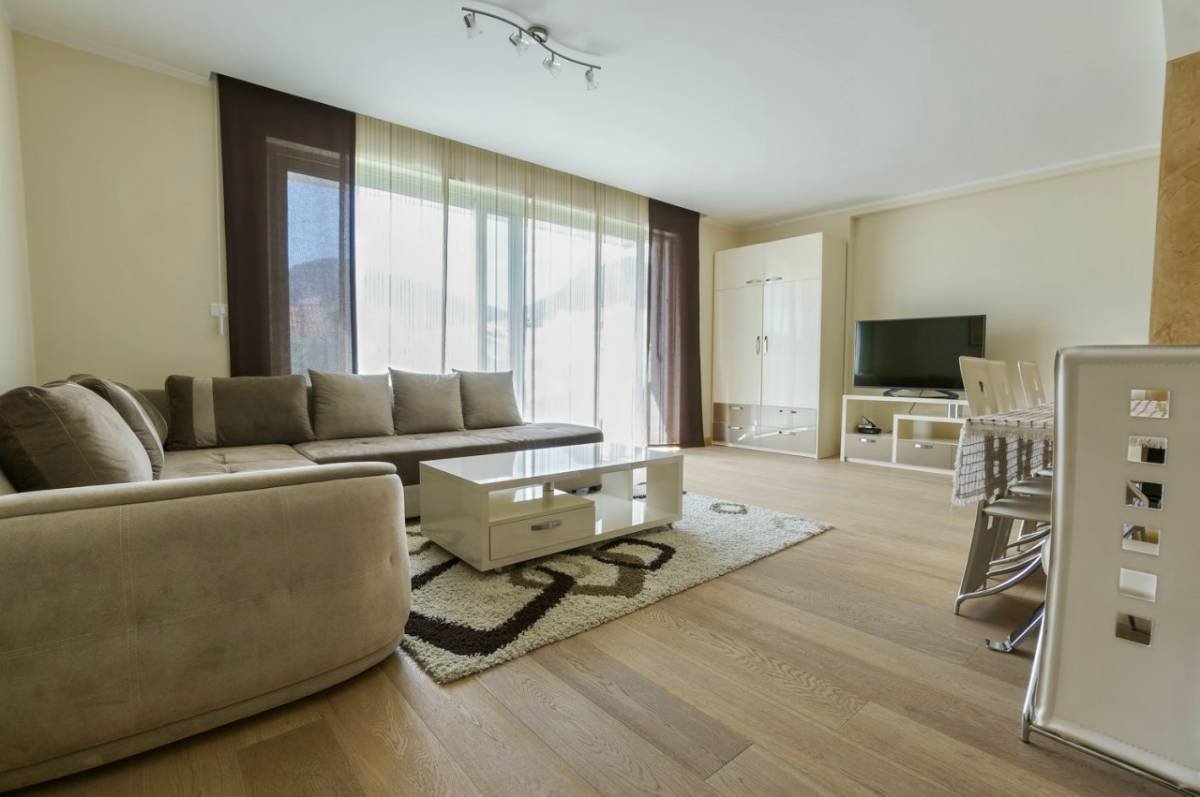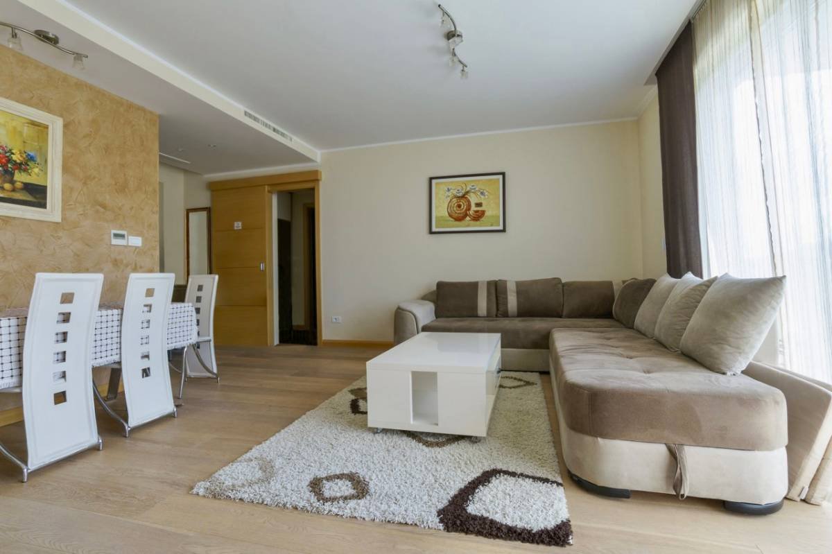 One-room apartment in a new building next to the Iberostar Slavjia hotel in Budva! An area of 61 m2 consists of a living room with a dining area, a kitchen, a bedroom, a laundry room, a corridor, a bathroom and a balcony overlooking the city. Fully furnished and equipped with household appliances, stylish kitchen, panoramic glazing, parquet flooring, bathroom with shower. Located in Budva in a central location, exit to the Jaderan path, near a city park, bus stop, IDEA market, 250 meters from the sea