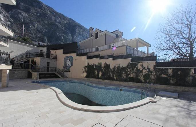 Two bedroom apartment for sale 50 meters from the sea in Dobrota, Kotor. In the courtyard there is a swimming pool, barbecue and recreation area. The apartment has an area of 85 m2 and is located on the first floor. Apartment layout: kitchen combined with dining room and living room, two bedrooms, two bathrooms and a large courtyard terrace. The apartment is fully equipped with furniture and all necessary household appliances.