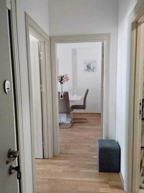 One-room apartment with Italian furniture near HDL in Budva! An area of 50 m2 consists of a living room, dining area, kitchen, bedroom, bathroom with shower and balcony - mountain view. Furniture from Italy, with appliances, parquet flooring, building with a modern, quiet elevator. Located in Budva, Lazi district, 950 meters from the sea, excellent location near HDL market, new School, Kuzhina restaurant, a monastery will be built.