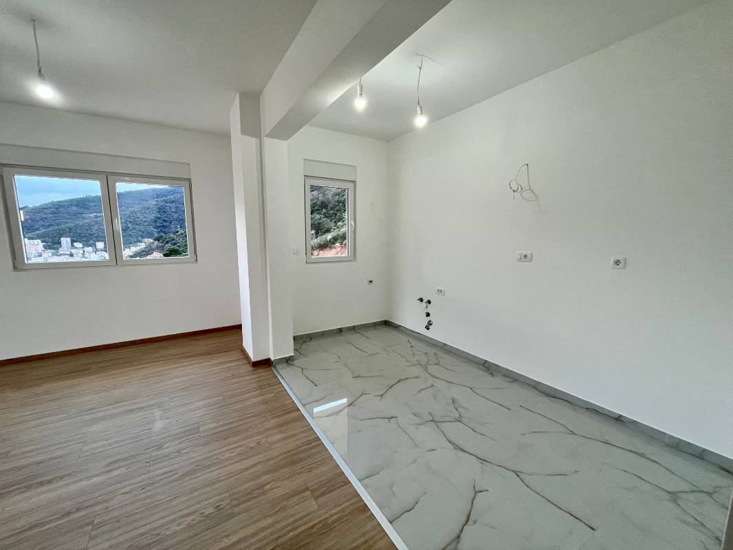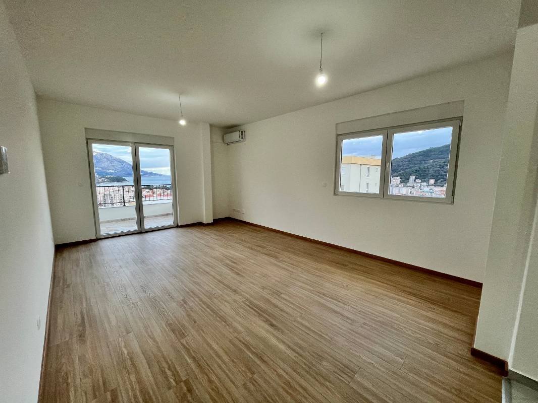 Three-room apartment in a new building in Budva with sea views! Area 92 m2, consists of a living room with kitchen, 3 bedrooms, 2 bathrooms and a balcony overlooking the sea and the city. Clean finishing, air conditioning, bathroom with shower and boiler. There is parquet in the living room and bedroom, tiles in the bathroom and kitchen. Dubovitsa Lux area, a new shopping center and hospital are being built nearby. Nearby is a school and a bus station.