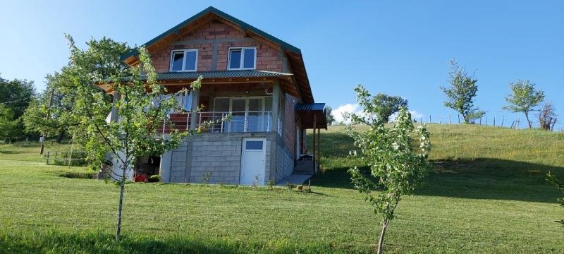 House for sale with a plot of 5771 m2 near Potpeche for 70,000 euros! A house of 144 m2, a garage of 30 m2, a terrace of 14 m2, and a meat dryer were built on the plot.There is its own water, electricity, video surveillance installed.More than 60 fruit trees and shrubs were planted on the site: apple trees, plum trees, blackberries, currants, cherries, and walnuts. Large plot, beautiful nature, nearby a beautiful lake, 25 km to Durmitor.
