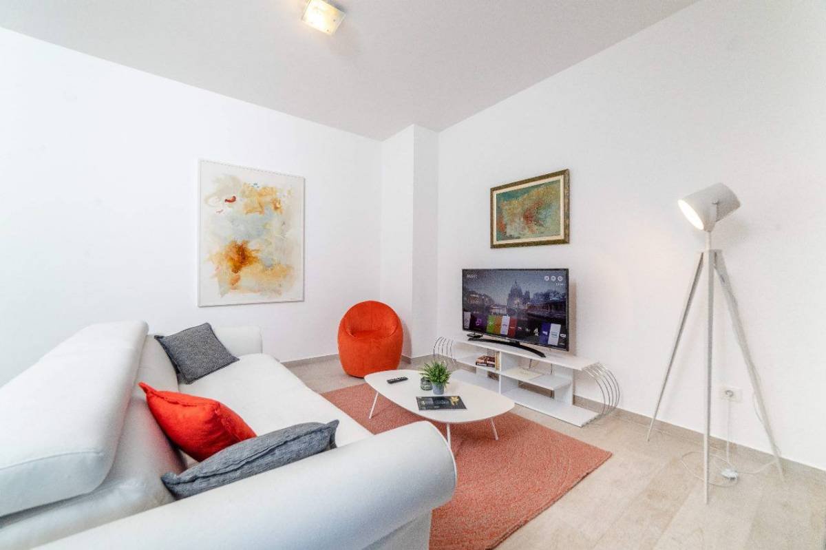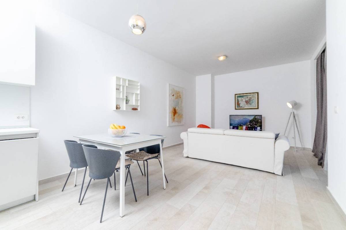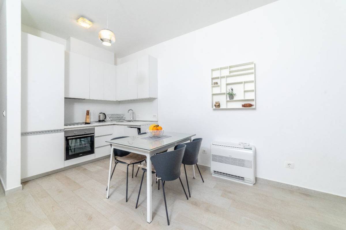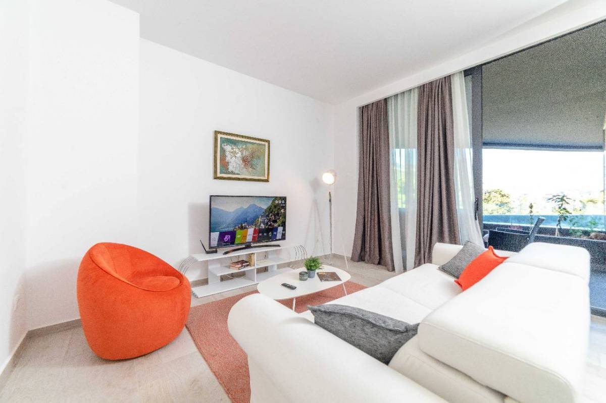 The area of 54 m2 consists of a living room, dining room with kitchen, bedroom, bathroom, terrace Modernly furnished, with high-quality appliances, air conditioning in the living room and bedrooms, heated floors in the bathroom. Luxury building in the center of Budva, in the building of the Perla restaurant, 100 meters to the sea, 3 minutes to the old town.
