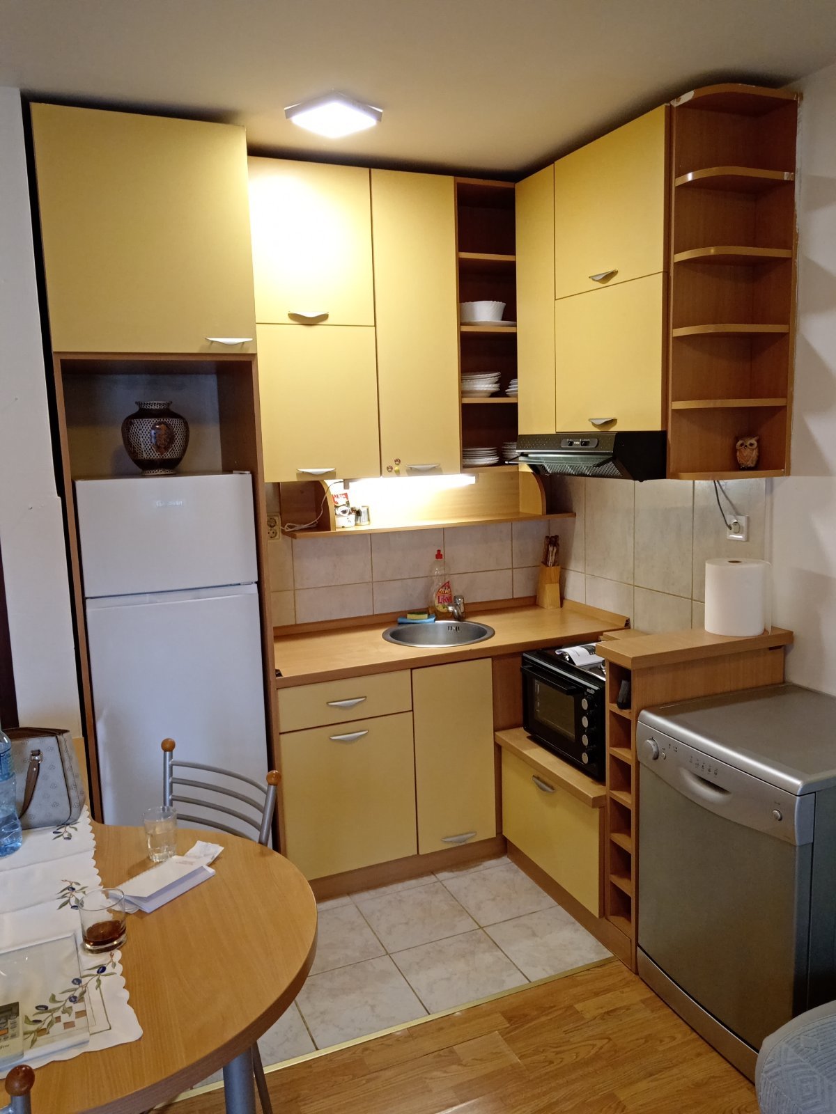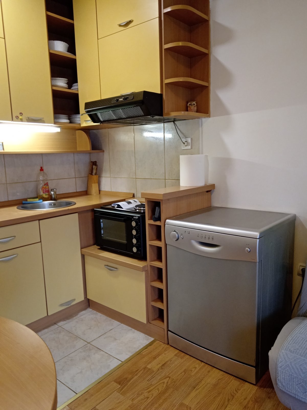 A bright and cozy 43 sq m apartment in the heart of Budva just 600 meters to the sea! It features a separate bedroom, a spacious living room with an open-plan kitchen, and a sunny terrace perfect for relaxing any time of day. Long-term rental available for one year.