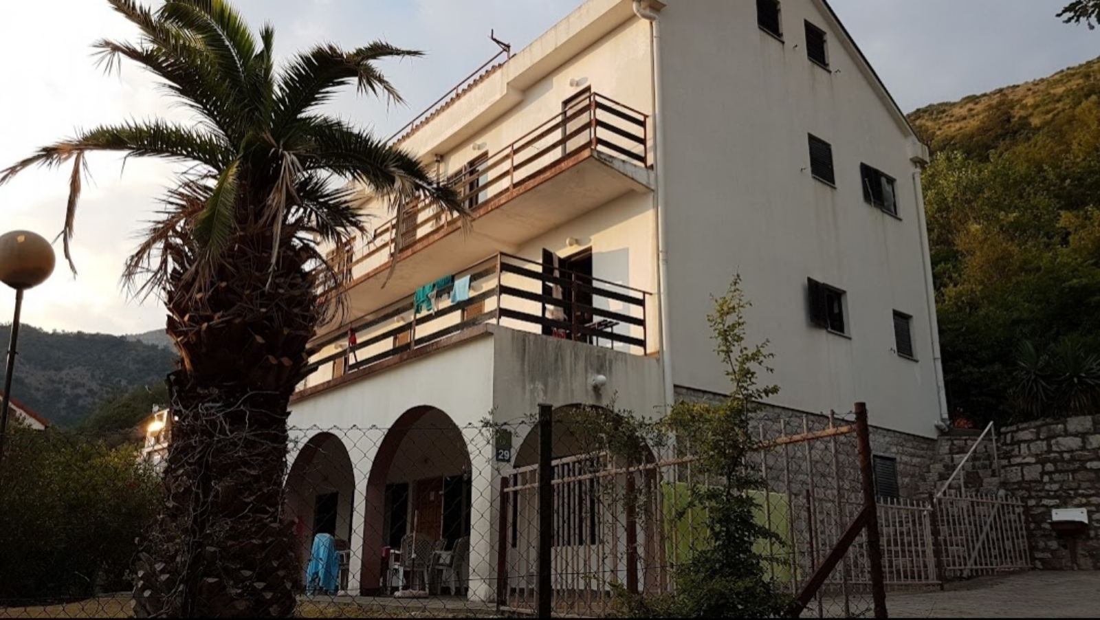 Commercial offer for a finished hotel apartment in Petrovac The building has 4 levels of 120m2. Total about 480m2. The ground floor has 2 bedrooms, bathroom, living room and kitchen. The 1st and 2nd floors are identical with 2 rooms and two apartments per floor. The building has 11 bathrooms in total. All rooms and apartments have a sea view. 3 floors plus attic has 2 rooms, a small kitchen and a large roof terrace. There is a large lawn in front of the house and a large terrace and vineyard behind. Forest and greenery are around the property. A total of 7.82 acres plus 2.5 acres of parking space for 10 vehicles, which is only for the users of the facilities. Distance from the sea is about 800m. There is a possibility of extension or expansion of the building. There is also the possibility of breaking through a separate road from the highway. The building is for adaptation!
