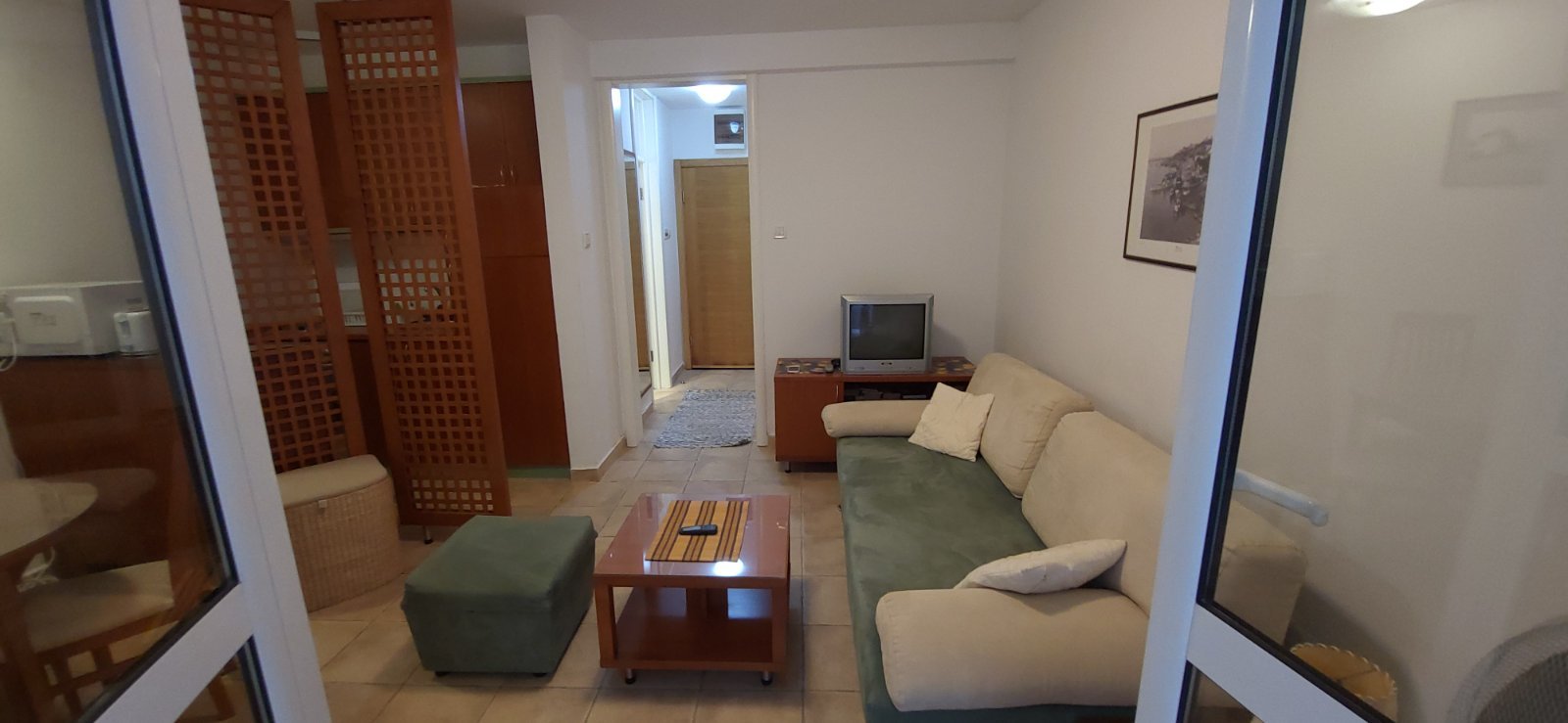 One bedroom apartment for sale in Petrovac. The apartment is located very close to the hotel WGrand. The area of the apartment is 37 m2 without terrace and the area of the terrace is 10m2. It`s located on the ground floor and has separate outside entrance to the terrace. The apartment is fully furnished and has 1 bedroom, livinig room with the kitchen and dining area, separate furnished kitchen out of the apartment on the terrace, built-in shower on the terrace, bathroom, corridor. The building is 300m far from the sea and 80m from Voli supermarket. It is a very good investment for you!