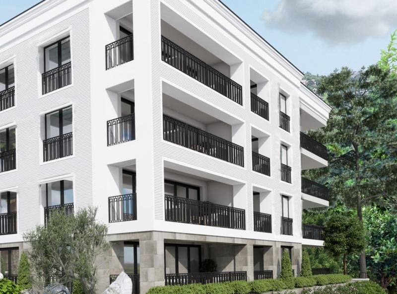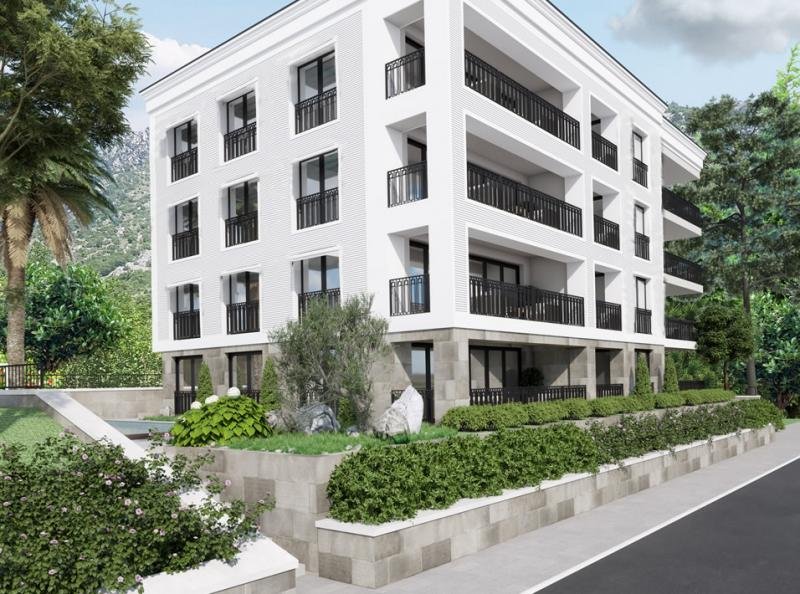 Two-bedroom apartment in a new building in Kumbor The area of 91 m2 consists of 2 bedrooms, living room with kitchenette, 2 bathrooms and a terrace. Located opposite the Portonovi complex. A high-quality building made of natural stone, panoramic windows, landscaping. Completion end of 2023