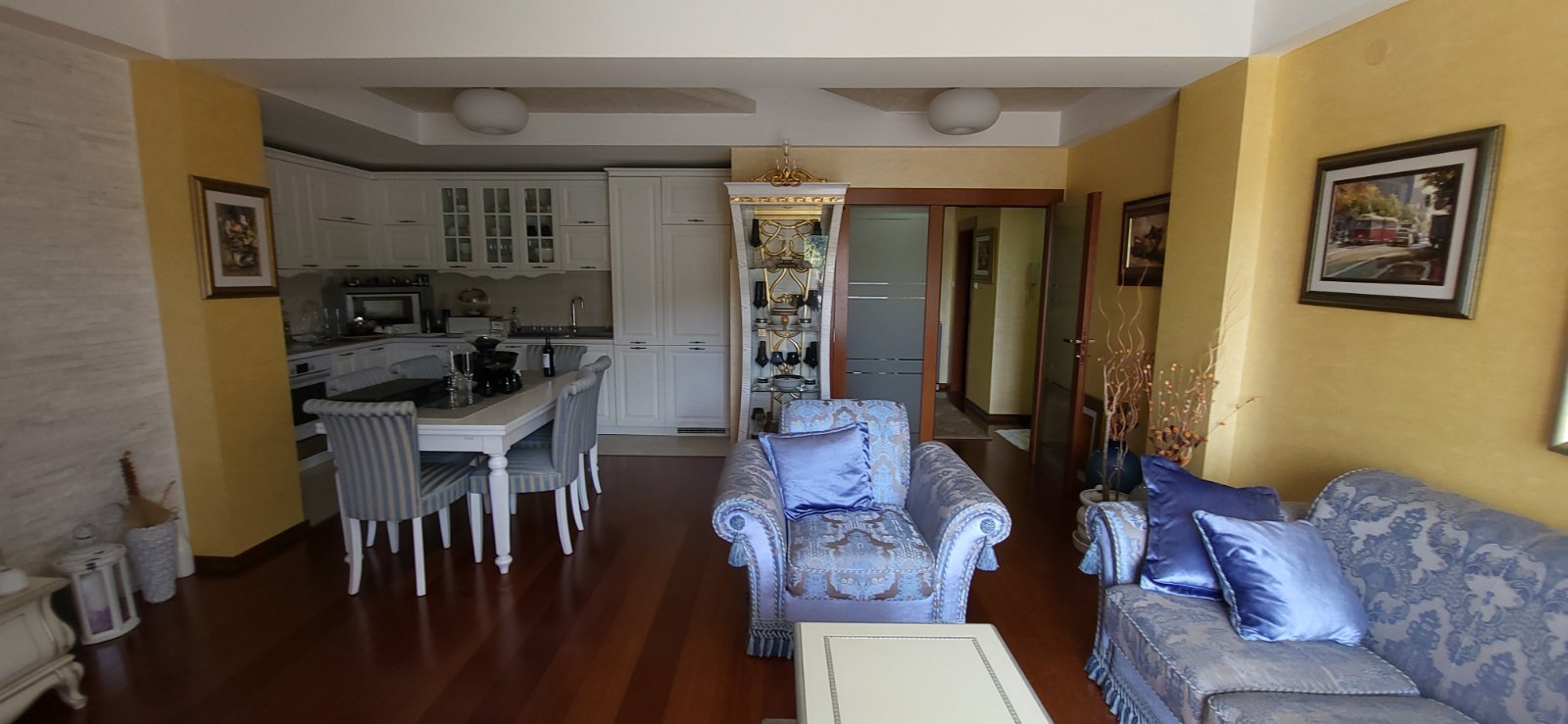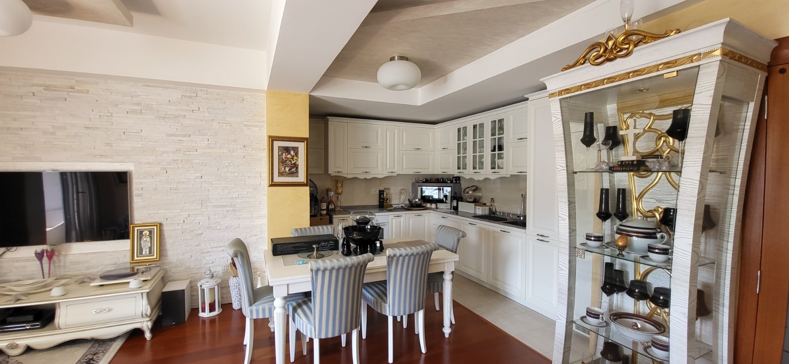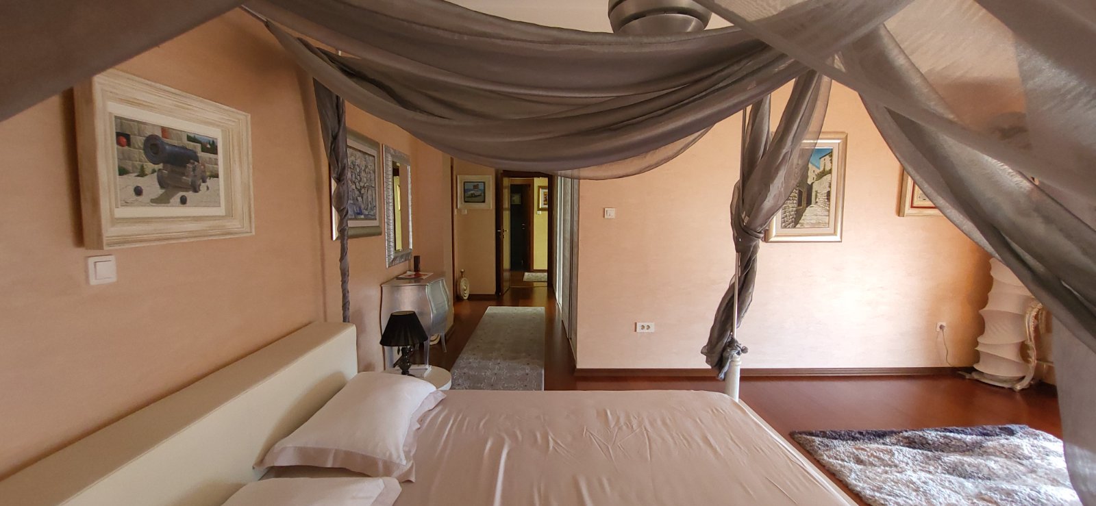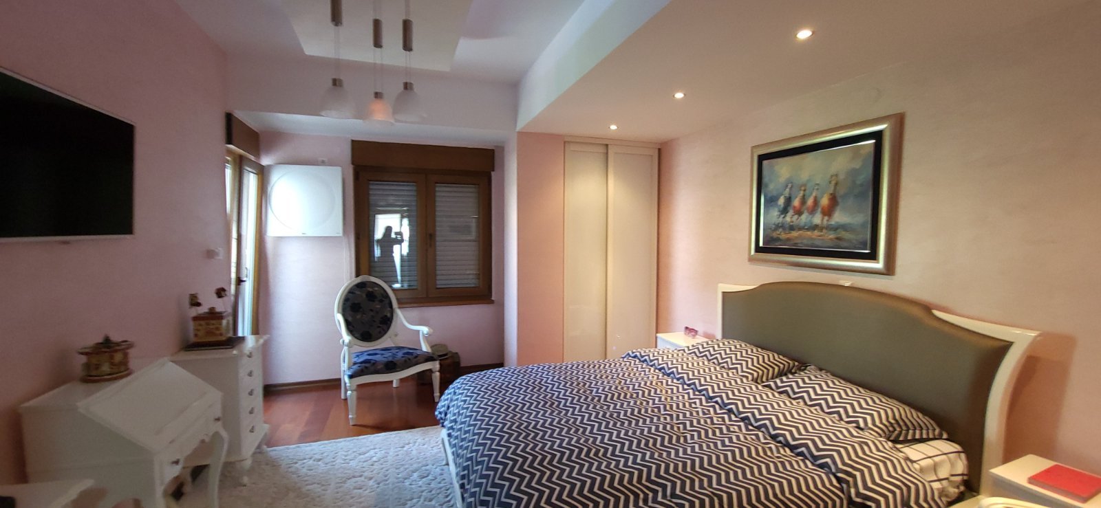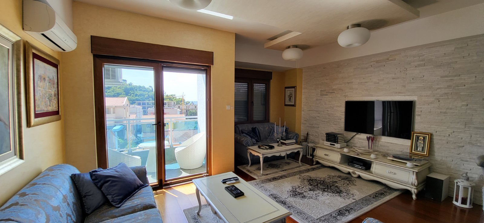 Prodajese trosoban stan klasičnog dizajna sa tri balkona u Petrovcu. Dizajniran veliki, prostran, svetao, luksuzan stan od 112m2 nalazi se na prvom visokom spratu, 250 metara od mora. Stan se sastoji od: velikog stilizovanog dnevnog boravka sa kompletno opremljenom kuhinjom i skupim aparatima i trpezarijom, dve spavaće sobe, dva kupatila, dve spavaće sobe imaju izlaz na terasu sa pogledom na more i Petrovac, hodnika sa ugradnim plakarima. Iz dnevnog boravka se pruža panoramski pogled na Petrovac i more. Stan je kompletno namješten i useljiv. Svi materijali i završna obrada u stanu su veoma kvalitetni. Sva potrebna infrastruktura za život je u blizini, 3 minuta hoda. Stan je posjeduje 2 parking mjesta. Moguća je prodaja stana nenamještenog. Cena će u ovom slučaju biti 463.500 evra. Ova ponuda je zaista isplativa investicija za vaš sadašnji i budući kvalitetan život!