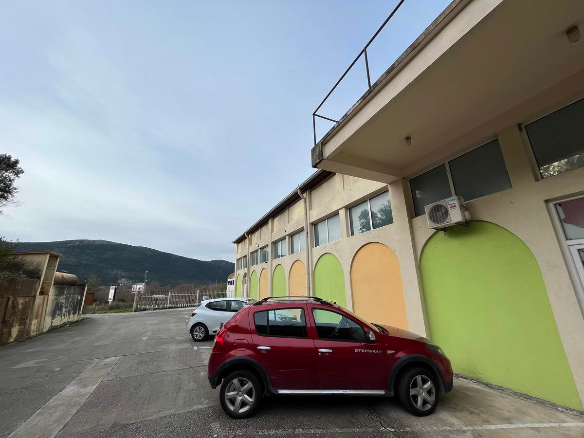 250 m2 uz zgradu (natkrivena suha prostorija za korištenje kao magacin). Ima 3 ulaz, kancelarije, kupatila, trpezariju. parking mjesta.