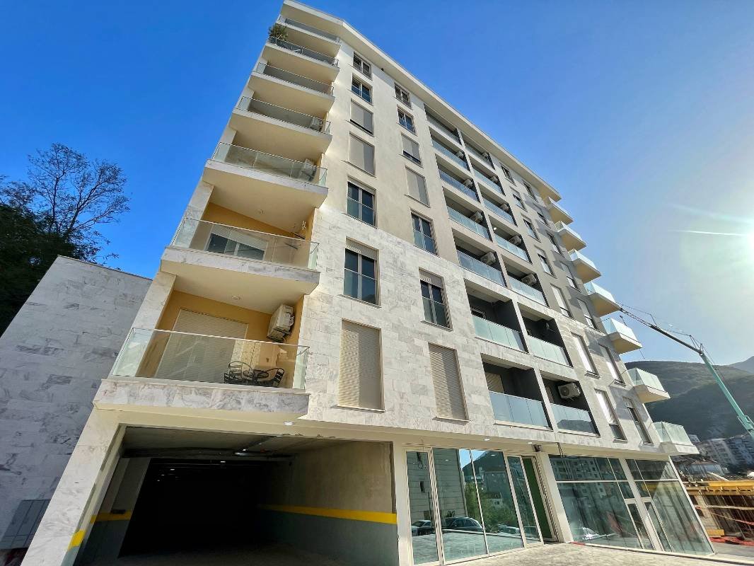 Površine 58 m2 sastoji se od dnevnog boravka sa kuhinjom, spavaće sobe, kupatila i velike terase. Namješten, čist i svijetao stan, parket, kuhinjski set, svi aparati. Nalazi se u bečićkoj četvrti Boretti 350 metara od mora, pored kompleksa Dukley Gardens na poluostrvu Zavala.
