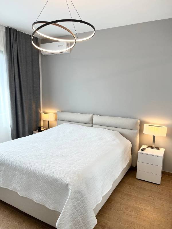 Prodaje se moderno namješten stan na atraktivnoj lokaciji u Bečićima. Stan površine 81 m2 nalazi se na 3. spratu novogradnje sa liftom. Stan je dvosobne strukture i sastoji se od dnevnog boravka sa kuhinjom i trpezarijom, dve prostrane spavaće sobe, ulaznog hodnika, dva kupatila i terase sa panoramskim pogledom na more. 12 minuta hoda do mora. Stan je opremljen namještajem njemačkih i talijanskih proizvođača, filterom za pitku vodu (reverzna osmoza), kvalitetnim Bosch kućanskim aparatima, te japanskim elektronskim bideom. Dokumenti su uredni, nema tereta i ograničenja.