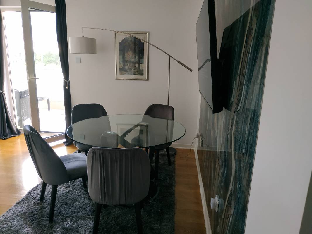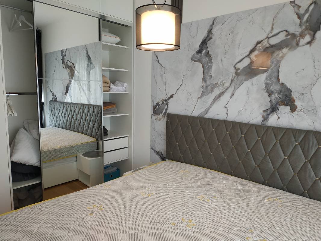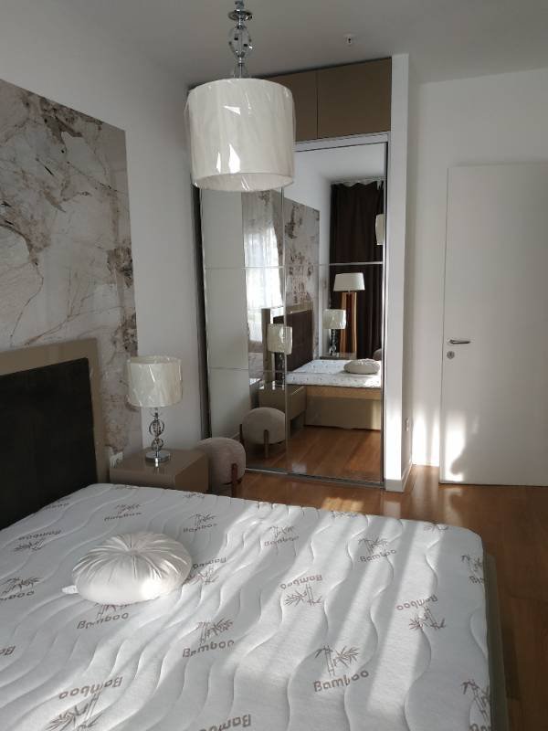 Trosobni stan u Crystal Toweru u kompleksu Tre Canne nalazi se na prvom spratu. Stan od 90 m2 je namješten i opremljen modernim aparatima, sa terase se pruža pogled na planine i grad. Stan je predstavljen sa dva bloka. Blok A se sastoji od spavaće sobe, dnevnog boravka, kuhinje, kupatila i terase, blok B se sastoji od dvije spavaće sobe, kupatila i terase. Zahvaljujući ovakvom rasporedu, objekat se može smatrati investicionim projektom sa mogućnošću izdavanja svakog bloka posebno.
