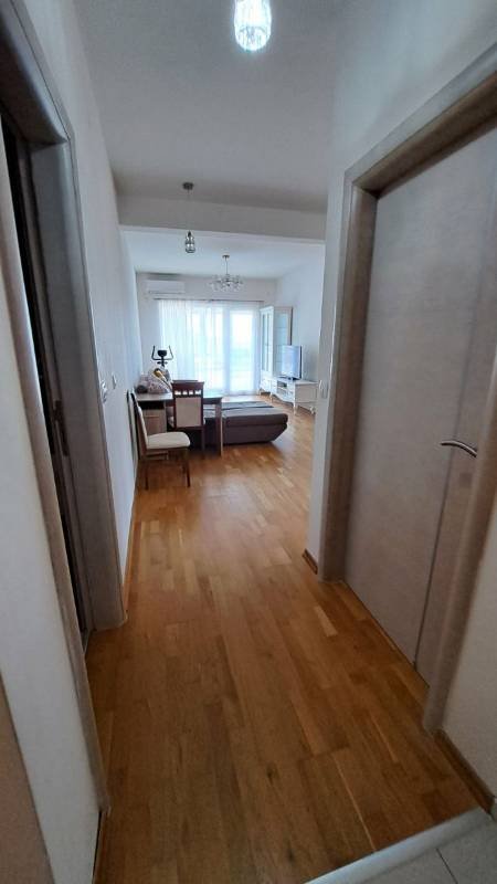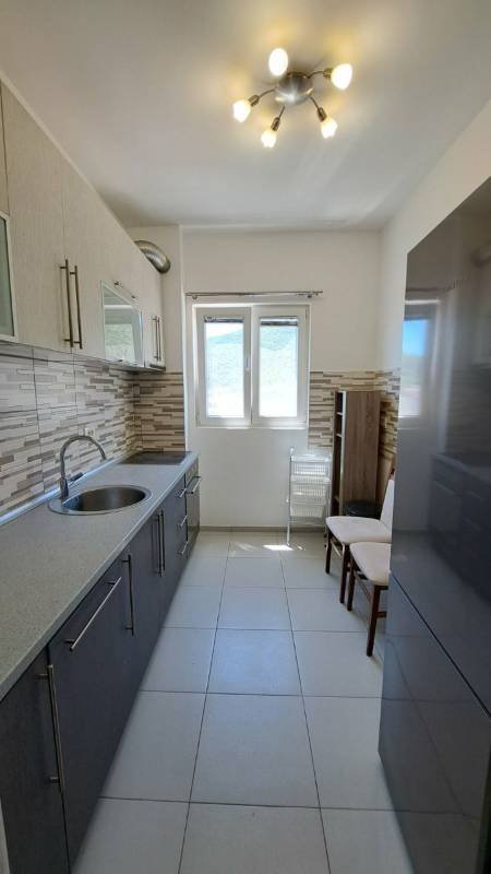 Dvosoban stan u Budvi, sa garažom i pogledom na more!Površine 78 m2, sastoji se od prostranog dnevnog boravka, spavaće sobe, dječije sobe, odvojene kuhinje, hodnika, 2 kupatila i zastakljene terase.Stan je namješten i opremljen modernim aparatima, u svakoj prostoriji je ugrađena klima.Prodavnice MegaMarket i Texnomax nalaze se na pješačkoj udaljenosti. 20 minuta hoda do mora.U cijenu je uključeno garažno mjesto.