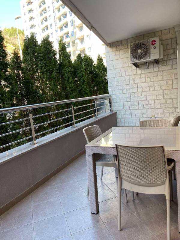 Jednosoban stan u Bečićima u kompleksu Anadolija! Na površini od 57 m2 nalazi se dnevni boravak u kombinaciji sa kuhinjom, spavaća soba, kupatilo i terasa. Stan je namješten, opremljen dobrom tehnikom, vlasnik je arhitekta, pa se prilikom renoviranja vodilo računa o raznim detaljima, grijani podovi u kupatilu i kuhinji i dnevnom boravku. Kompleks ima sopstveni otvoreni bazen, dečije igralište, dosta zelenila, prostor je uređen, ulazi veoma čisti, jasno je da se redovno čiste. U cijenu je uključeno podzemno parkirno mjesto.