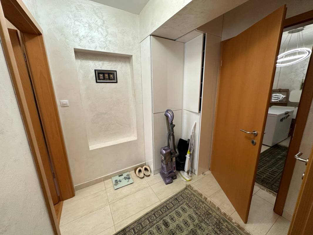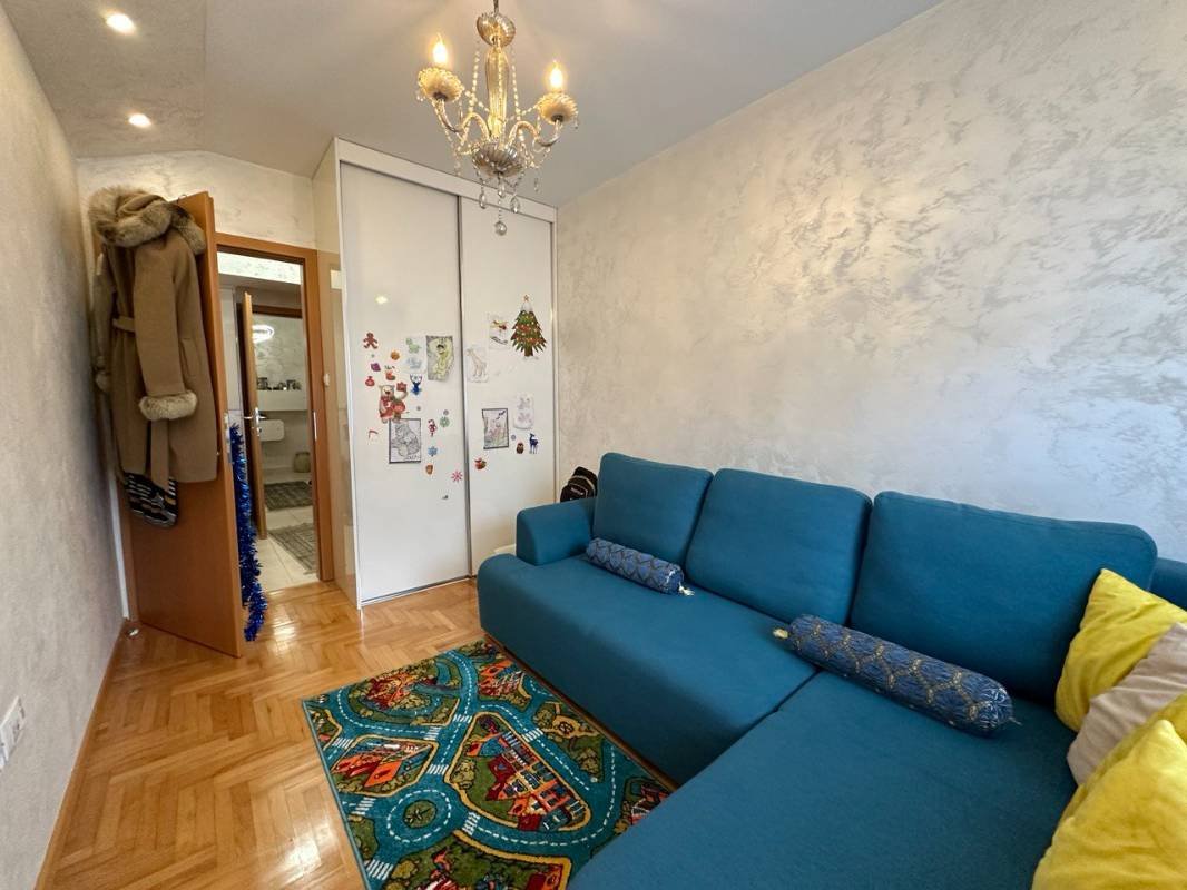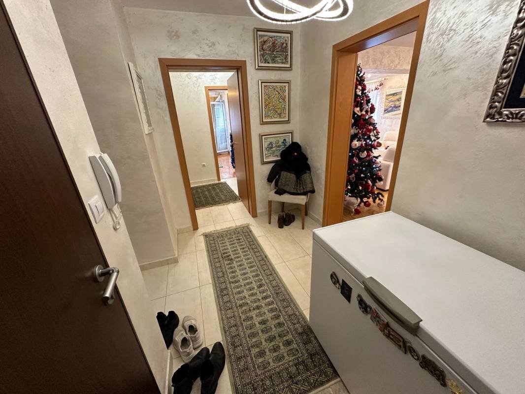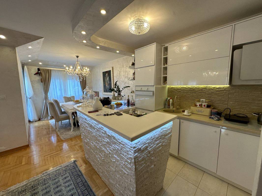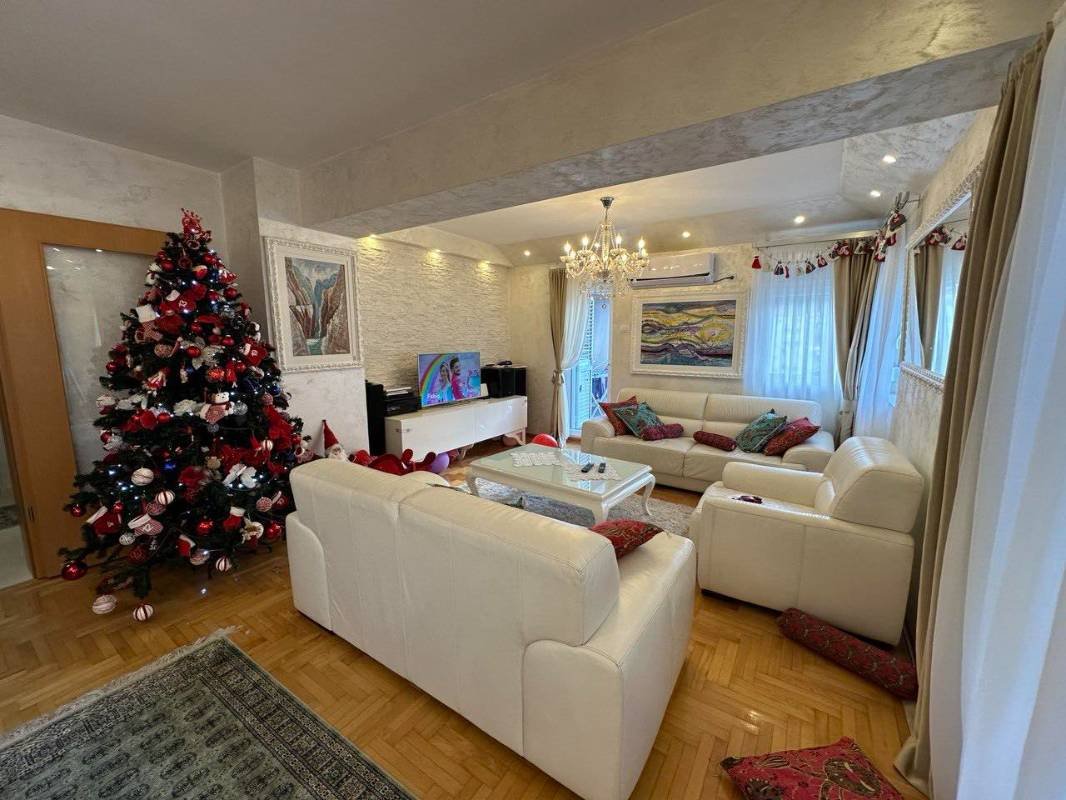 Prodaje se prostran dvosoban stan u Budvi oko Akademije Znanja. Površina je 90 m2 koja uključuje dnevni boravak sa kuhinjom, dvije spavaće sobe, dvije kupaonice i balkon. Stan je renoviran po visokom standardu, ugrađena je sva neophodna oprema, i namješten skupim luksuznim namještajem. Ima svoje parking mjesto. Moguća je dodatna kupovina garaže od 20 m2 za 21.500 eura.