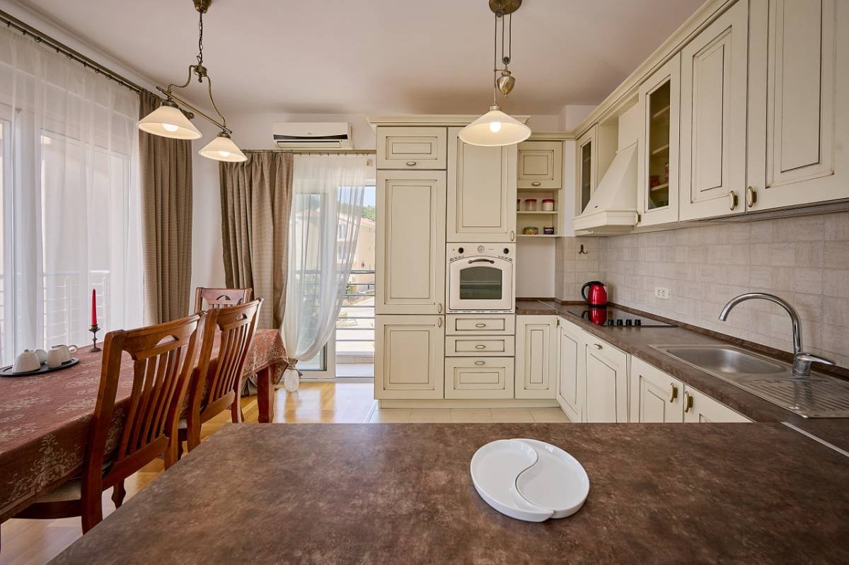 Prodaje se dvosoban stan u Bečićima sa prekrasnim pogledom na more! Površine 98 m2, koja obuhvata ulazni hol, prostrani dnevni boravak sa odvojenom kuhinjom sa ostrvom, hodnik, dve odvojene spavaće sobe, dva kupatila (uključujući i osobnu za glavnu spavaću sobu), veliki balkon sa prekrasnim pogledom na Budvansku rivijeru.Prozori su trostrani, panoramsko zastakljivanje, el. roletne, klima uređaj u svakoj prostoriji, porculanske pločice i prirodni parket na podu, ugradni plakari, met. vrata. Stan je kompletno namješten i opremljen svom potrebnom opremom. Stan je napravljen za vas, sve je odabrano skladno i sa ukusom: italijanska ugradbena kuhinja od punog drveta, Gorenie aparati (frižider, šporet, rerna, napa, mašina za suđe), sofe od prave kože sa pomoćnim ležajem (160*200) ), visokokvalitetni rasvjetni uređaji (proizvedeni u Italiji, Mađarskoj). Što se tiče zgrade, ovo je moderna klupska kuća na 5 spratova sa 15 apartmana sa podzemnim parkingom, liftom (!), privatnom baštom i prostorom za roštilj, izgrađena 2010. godine po individualnom projektu poznatog arhitekte uz striktno poštovanje svi zahtjevi za seizmičku otpornost. Završna obrada je urađena skupim i kvalitetnim materijalima, fasada je od prirodnog kamena, sve komunikacije su centralne, dodatno postoji veliki podzemni rezervoar za vodu (50 m3) u slučaju nužde! Održavanje ispravnog tehničkog i sanitarnog stanja kuće vrši društvo za upravljanje. Sva infrastruktura (trgovine, pošta, banke, apoteke, kafići, restorani itd.) je na pješačkoj udaljenosti, do mora je 15 minuta (1200 m), a šetnja do centra Budve uz nasip traje 40 minuta (3 km). Pravno čist stan bez tereta! Dodatno, za 15.000 eura možete kupiti parking mjesto u podzemnom parkingu. Cijena 246.000 eura.