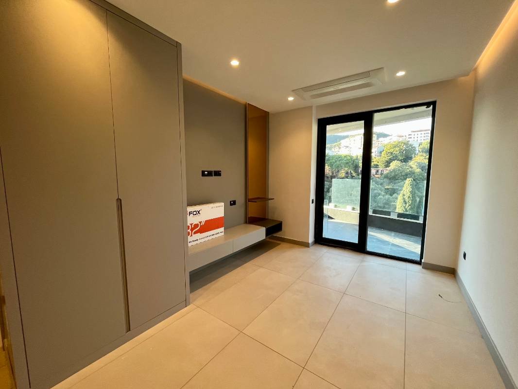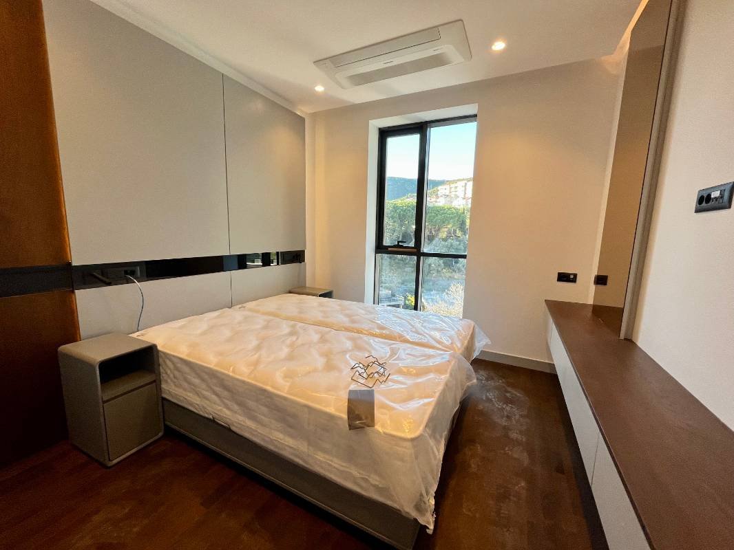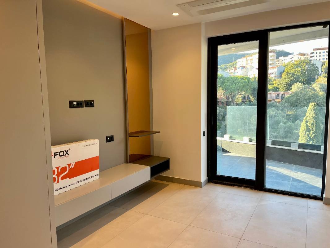 VIP namješten jednosoban stan na prvoj liniji u Bečićima! Površine 45 m2 sastoji se od dnevnog boravka sa kuhinjom, spavaće sobe, kupatila, terase 9 m2 sa pogledom na planinu. Kompletno namješten, parket, kuhinja, skrivena klima, kauč, krevet, plakari, sve po narudžbi. Ulazna vrata sa kombinovanom bravom, higijenski tuš, spušteni plafon, ugradni aparati, panoramsko zastakljivanje.Nekretnina će biti useljiva do kraja 2024. godine. Smještena u Bečićima, 100 metara od šetališta i netaknute plaže, Budva je udaljena 5 minuta automobilom.