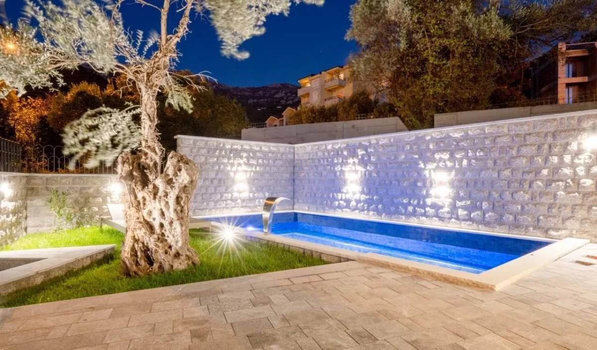 Vila 318 m2 sa pogledom na more u Reževićima! Površine 318 m2 na parceli od 575 m2, dnevni boravak sa kuhinjom, 5 spavaćih soba, 4 kupatila, terasa sa bazenom 64m, 3 parking mjesta. Centralna klima, skupa italijanska keramika i parket, grijani podovi, solarni paneli. Lokacija Reževići 300 metara od mora, okruženi čistim vazduhom, 10 km do Budve, aerodroma Tivat 30 km, aerodroma Podgorica 50 km