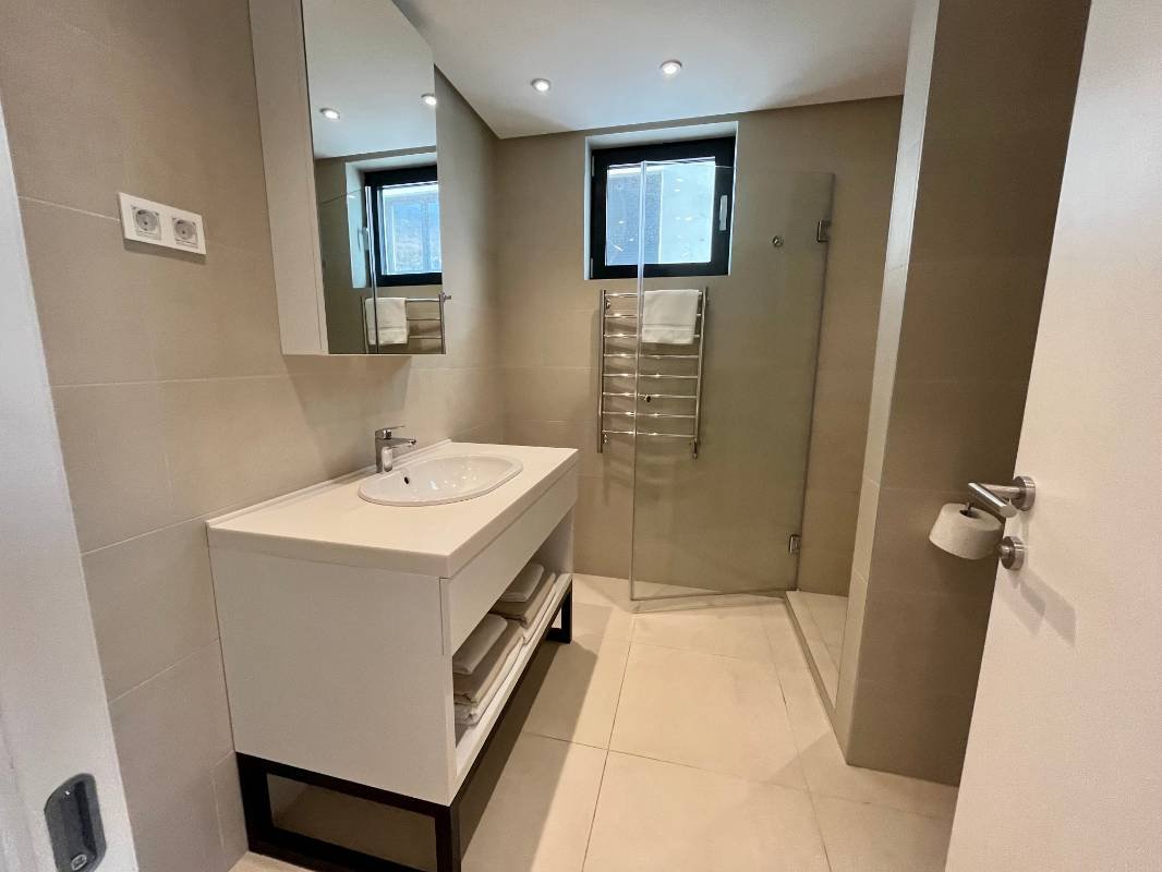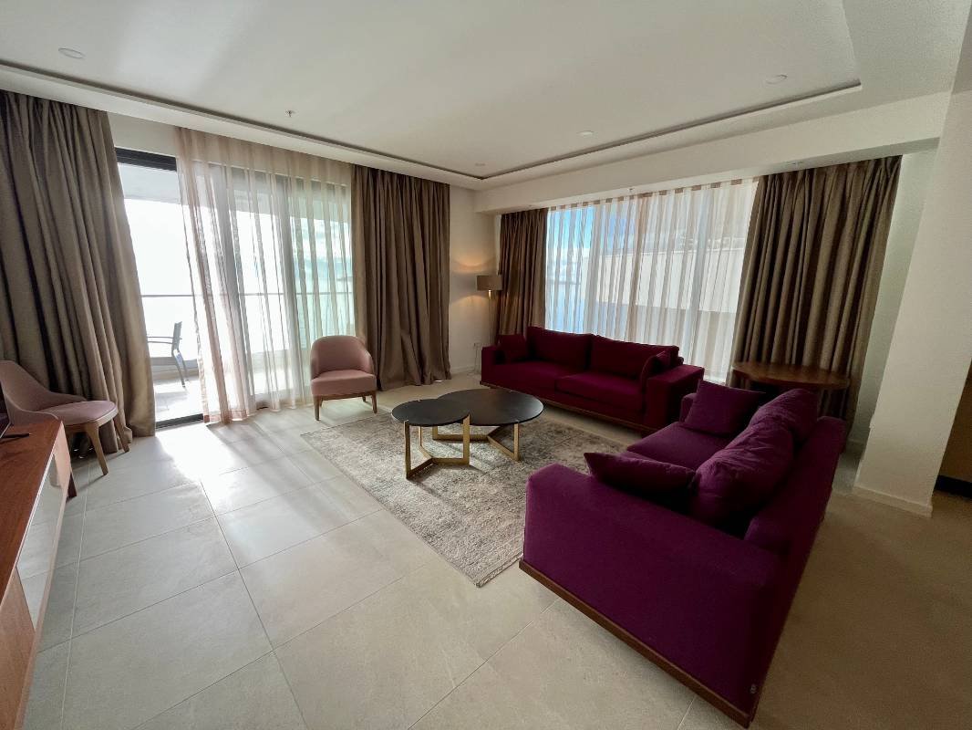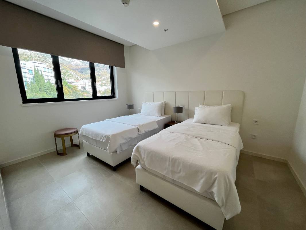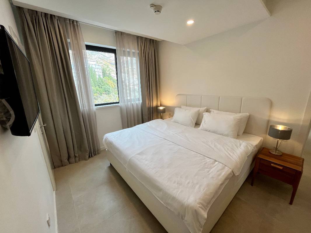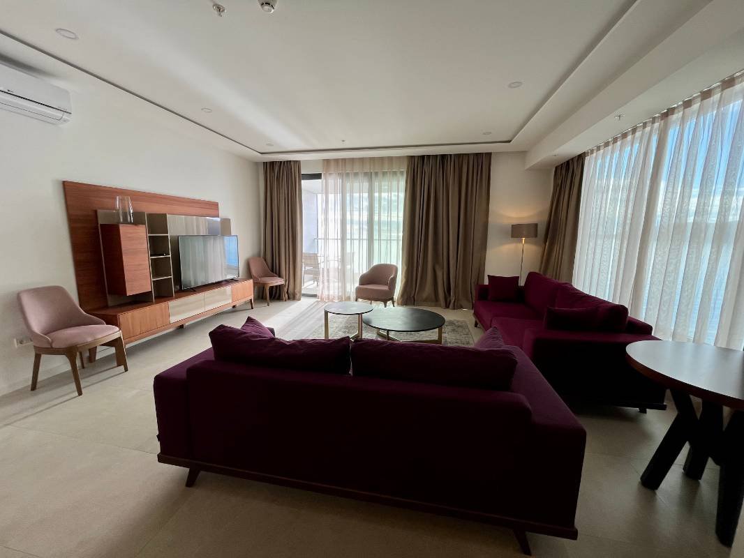 Dvosoban stan na prvoj liniji mora! Snižena cijena samo do kraja godine! Površine 110 m2 sastoji se od dnevnog boravka, kuhinje blagovaone, 2 spavaće sobe, 2 kupaonice, garderobe, terase sa panoramskim pogledom na more! Kompletno namješten modernim namještajem i Bosh kućanskim aparatima, grijani podovi u kupatilu, ostava na terasi. Smješten na prvoj liniji bečićkog nasipa u mjestu Rafailovići, u modernom kompleksu sa internacionalnim restoranima.