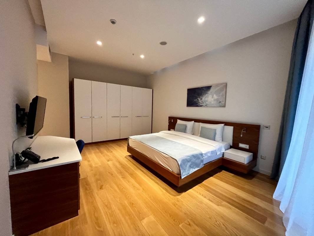 Jednosoban stan 95 m2 u srcu Budve u zgradi TQ Plaza centra! Površine od 95 m2 sastoji se od dnevnog boravka sa kuhinjom, ogromne spavaće sobe, kupatila, gostinjskog toaleta i terase sa pristupom iz obe sobe. Kompletno namješten, parket, spušteni strop, centralno hlađenje. Nalazi se u samom srcu Budve, u kompleksu TQ plaza, 150 metara od mora i 5 minuta hoda od starog grada. Mogućnost zakupa parkinga uz mjesečnu uplatu od 75€/mjesečno, u podzemnoj garaži tržnog centra! Kompleks TQ Plaza ima bazen, teretanu, kozmetički salon, tržni centar sa kafićima i restoranima.