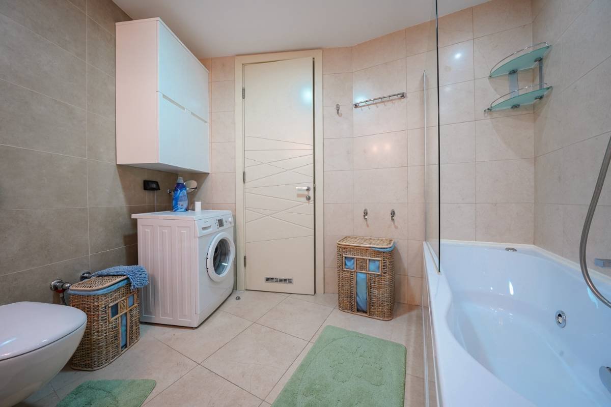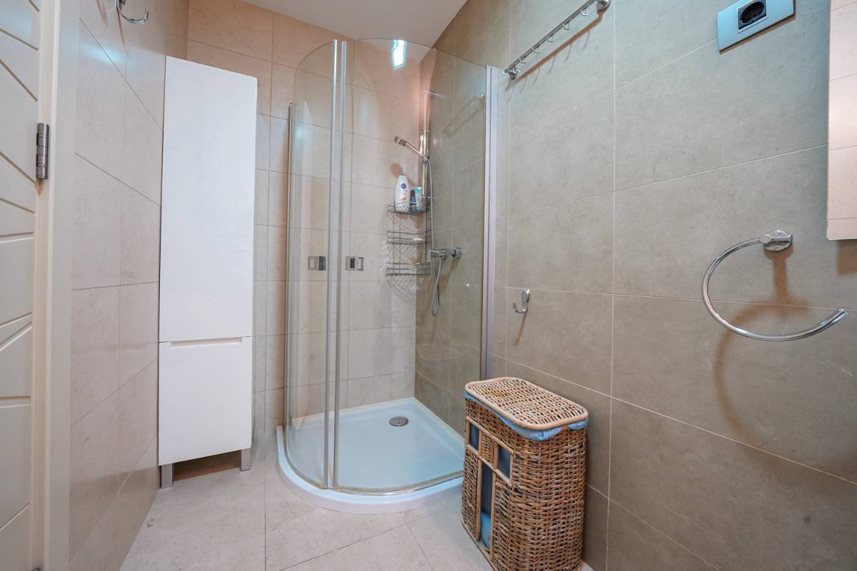 Dvosoban stan 94 m2 sa pogledom na more u TQ Plazi! Površine 94 m2 sastoji se od dnevnog boravka sa kuhinjom, 2 spavaće sobe, 2 kupatila (jedno sa tuš kabinom, drugo sa kadom sa hidromasažnom) terase. 150 metara od mora na ulazu se nalazi pijaca i prodavnica, u zgradi se nalazi uprava, komunalno poduzeće, obezbeđenje, prodavnice, butici itd. Topla voda bez bojlera, centralna klima i grijanje, el.brave, vinski orman, udobna garderoba, izlaz na terasu i prozori od poda do plafona u svakoj prostoriji.