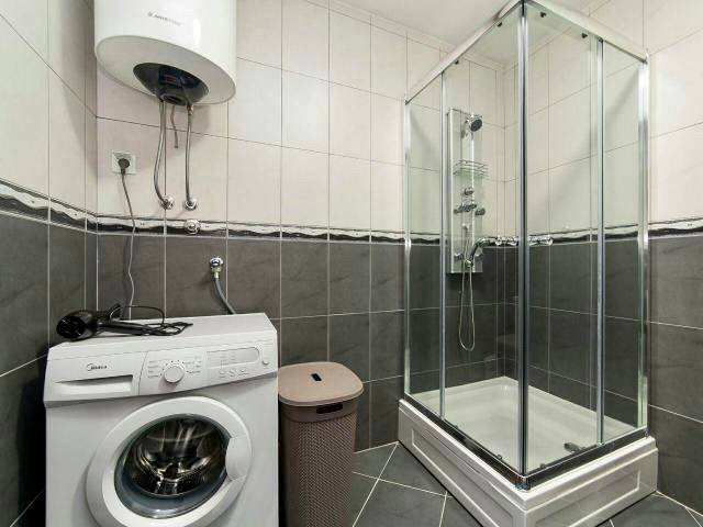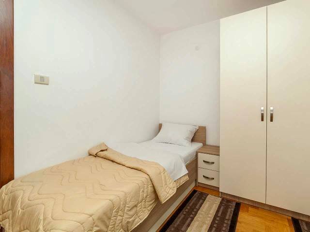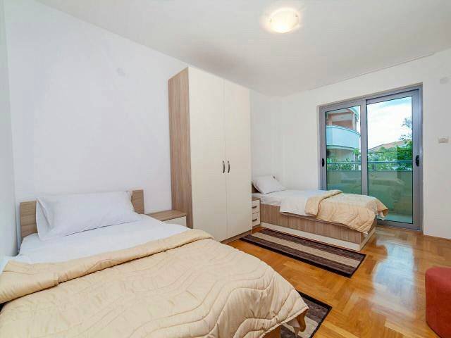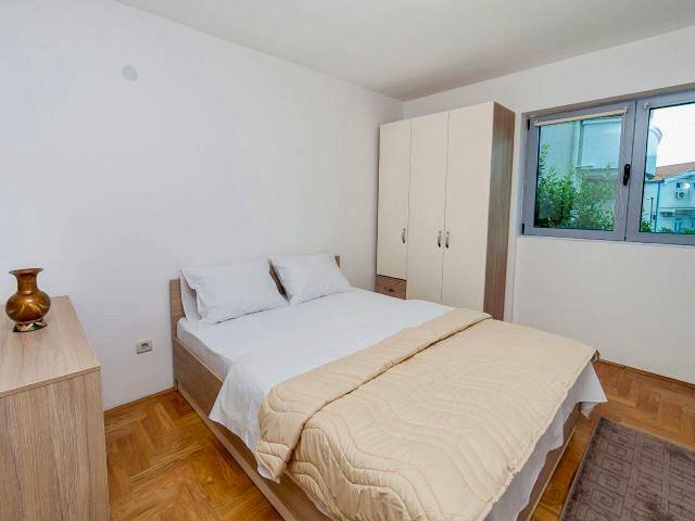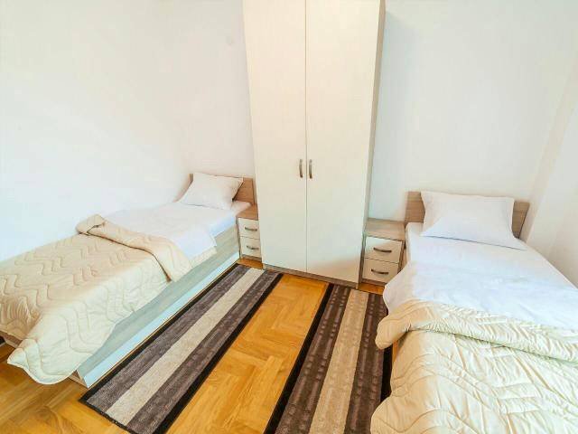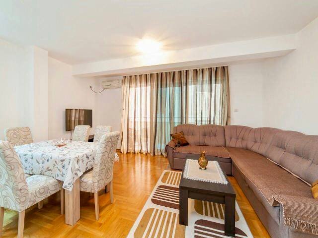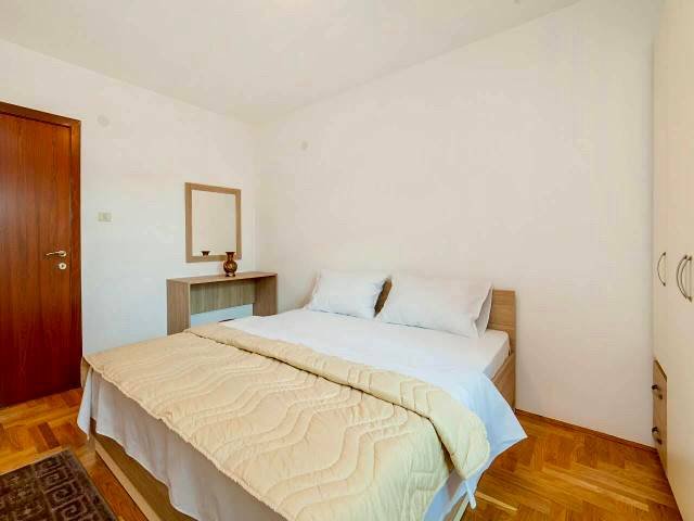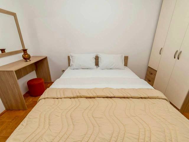 Dvosoban stan 80 m2 u Pržnu Površine 80 m2 sastoji se od dnevnog boravka sa kuhinjom, 2 spavaće sobe, kupatila, gostinjskog toaleta i terase. Zgrada ima lift i ima parking prostor za stanare. Kompletno namješten bijelom tehnikom i prostranom terasom. Nalazi se u Pržnu 300 metara od plaže Kamenovo, 7 minuta hoda od Miločera i parka Sveti Stefan. Dokumenti 1/1