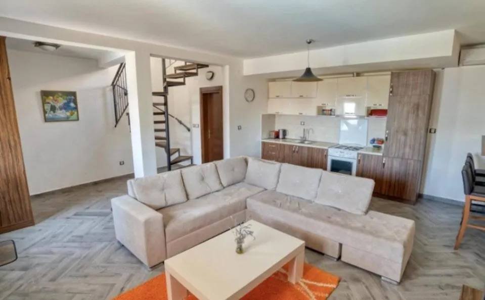 Vila sa bazenom i pogledom na more u Bečićima na 1 godinu Površine 92 m2 sastoji se od dnevnog boravka sa kuhinjom, kupatila i terase, 2 spavaće sobe, kupatila i terase - pogled na more. Vikendica ima privatnu kuhinju, roštilj i vanjsku blagovaonicu te kupaonicu s hidromasažnom kadom. Gosti mogu uživati u besplatnom bežičnom internetu i opustiti se u bazenu ili na terasi. Plaćanje 22.000 € odmah 100%
