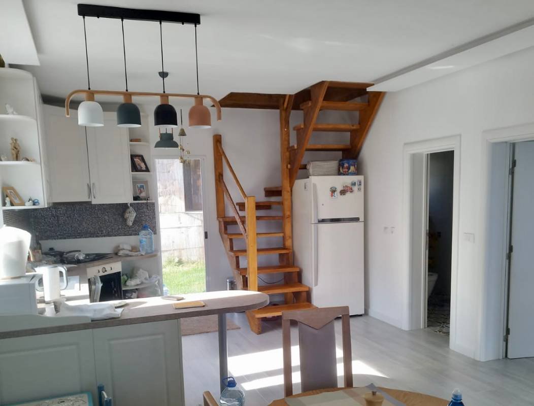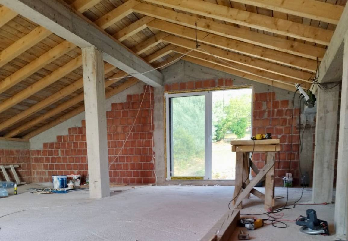 Površina 270 m2, parcela 1018 m2 1. kat sa završnom obradom, sastoji se od dnevnog boravka sa kaminom, 1 spavaće sobe, kuhinje s blagovaonom. 2. kat - 2 spavaće sobe i kupatilo, iz soba se pruža pogled na more. Potkrovlje - gruba obrada. Parcela se sastoji od više katastarskih parcela, moguća je izgradnja još jedne kuće. Dokumenti čisti 1/1
