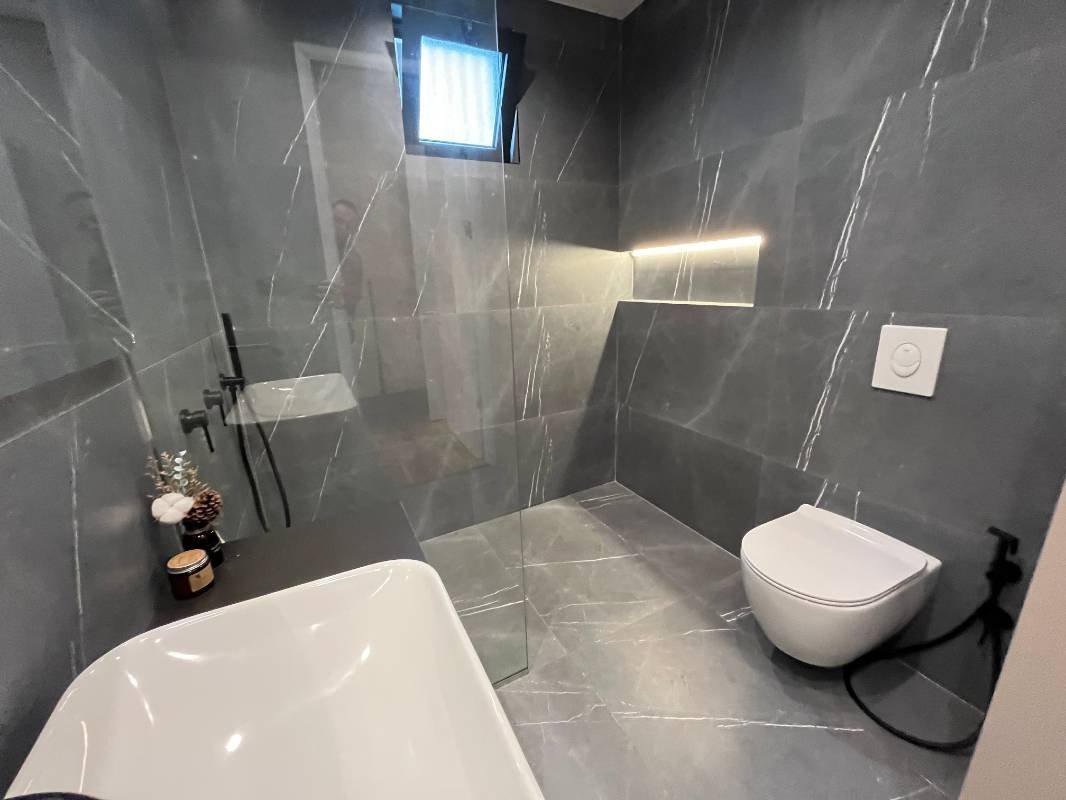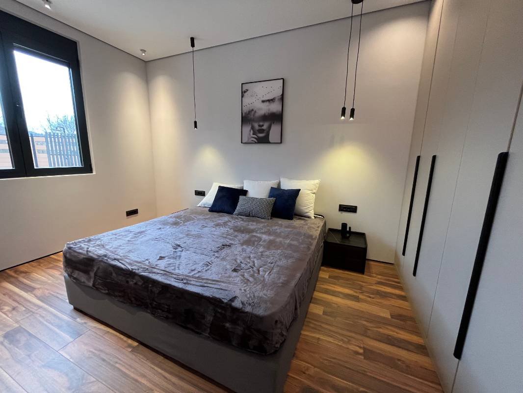 Površine 54 m2 sastoji se od dnevnog boravka sa kuhinjom, spavaće sobe, kupatila i terase.Luksuzno namješten, sjenilo, rasvjeta od led letvica, grijani podovi u kupatilu, pametno grijano ogledalo, keramika velikog formata, 2 klime, kuhinja sa aparatima, dječje igralište i sportski teren, roštilj, fasadna rasvjeta, ležaljke i suncobrani uz bazen.Nalazi se u Lastvi Grbaljskoj, 5 minuta vožnje od Budve i plaže Jaz, idealno za one koji vole mir i tišinu!