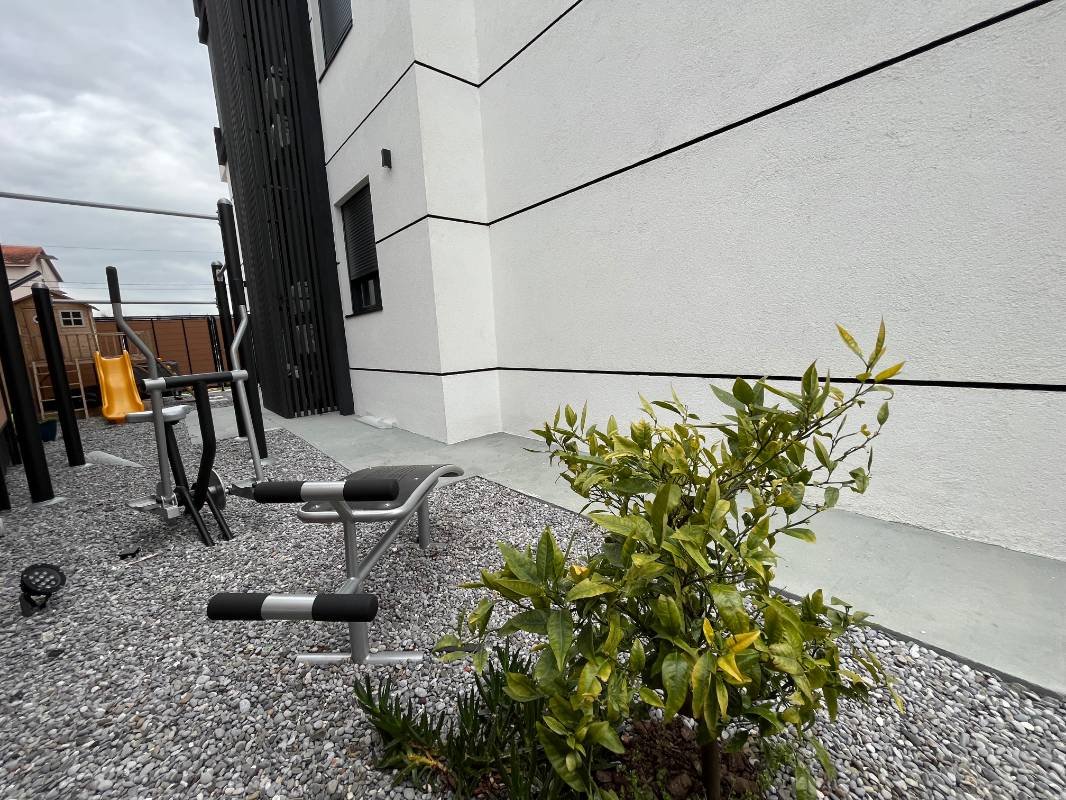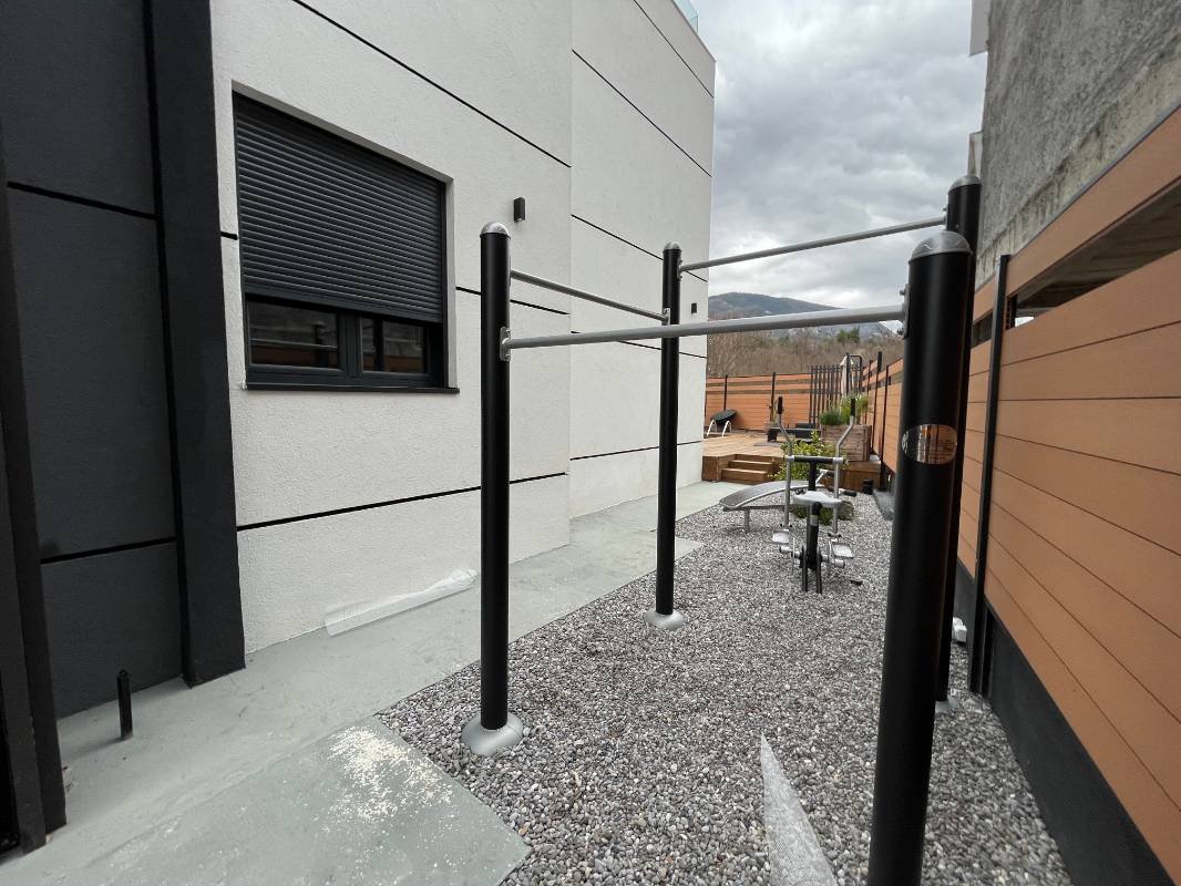 Površine 52 m2 sastoji se od dnevnog boravka sa kuhinjom, spavaće sobe, kupatila i terase.Luksuzno namješten, sjenilo, rasvjeta od led letvica, grijani podovi u kupatilu, pametno grijano ogledalo, keramika velikog formata, 2 klime, kuhinja sa aparatima, dječje igralište i sportski teren, roštilj, fasadna rasvjeta, ležaljke i suncobrani uz bazen.Nalazi se u Lastvi Grbaljskoj, 5 minuta vožnje od Budve i plaže Jaz, idealno za one koji vole mir i tišinu!