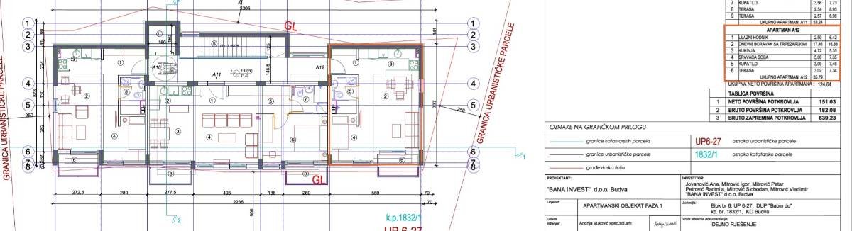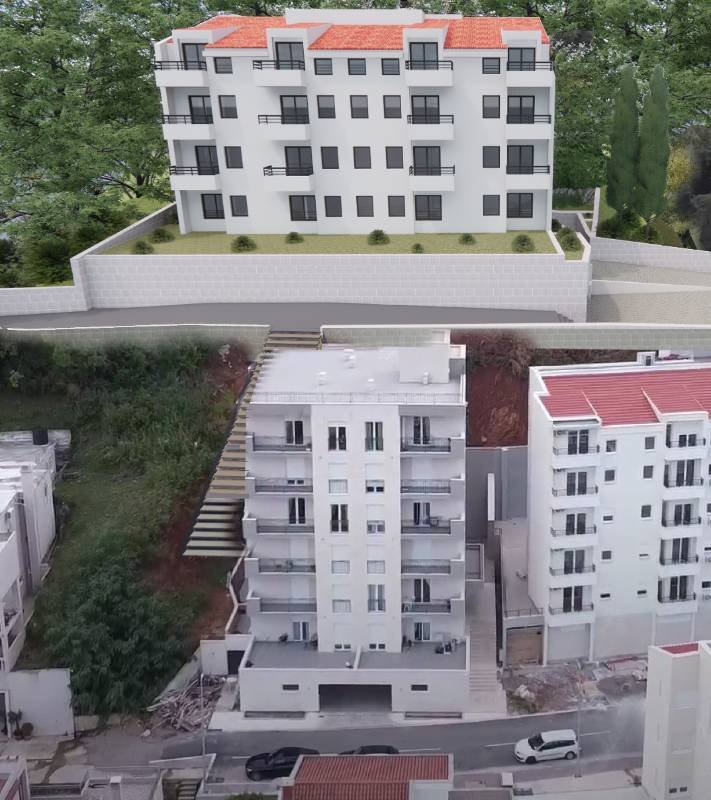 Пространа гарсоњера у новој згради површине 35,61 метара налази се на 4. спрату четвороспратнице и састоји се од дневног боравка и одвојене кухиње, постоjи простор за спаванье и купатила и садржи терасу. Стан има прекрасан поглед на море. Стан се налази у непосредној близини центра, 600 метара од мора. У доњем делу куће налази се гаража, а изнад гараже је уређен простор за декоративни пејзаж са зеленим површинама. Објекат би требало да буде завршен 1. јануара 2026. године.
