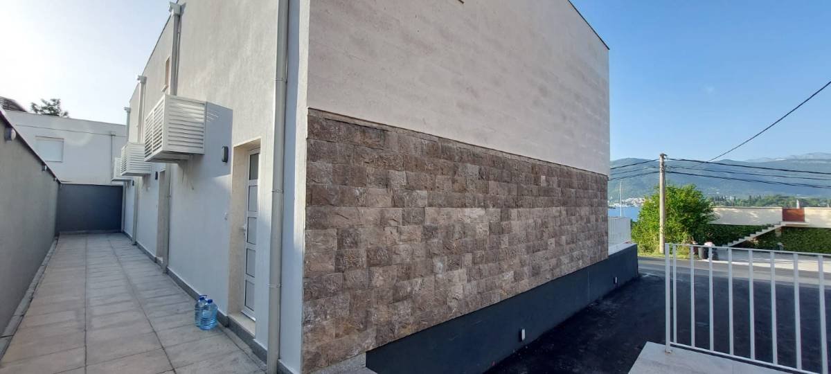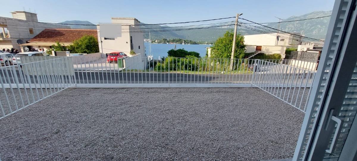 Prodaje se stan od 90 m2, koji se nalazi u modernoj gradskoj kući na poluostrvu Luštica, 50 metara od mora, sa prekrasnim pogledom na Tivatski zaliv i Ostrvo Cveća. Stan ima dvije etaže (dupleks). Prvi kat se sastoji od dnevnog boravka u kombinaciji sa kuhinjom, wc-a, ograđene terase od 15 m2, na drugom katu se nalazi kupaonica, 2 spavaće sobe. Zidovi u spavaćim sobama i dnevnom boravku su okrečeni, podovi i zidovi u toaletu i kupatilu na prvom i drugom spratu su keramika. Grijani podovi u dnevnom boravku, wc na 1. spratu, u hodniku i spavaćoj sobi, u kupatilu i na 2. spratu. Sobe su opremljene klima uređajem. Privatno parkirno mjesto. Tu je i prostor za roštilj i igralište za djecu.