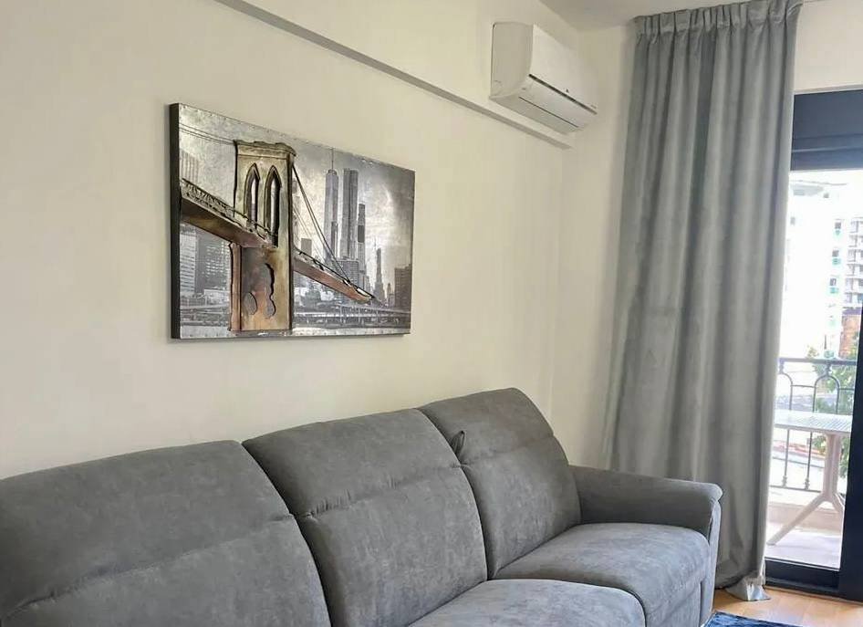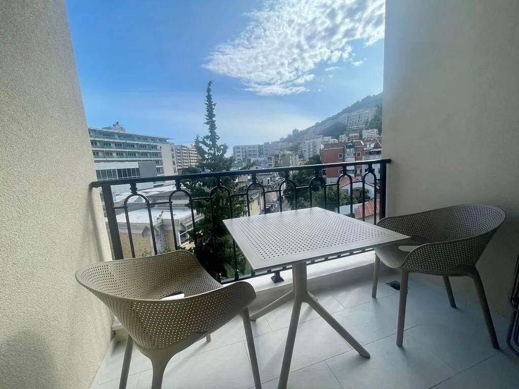 • Površina: 43 m² • Terasa sa pogledom na planinu • Novi namještaj iz Italije • Visokokvalitetna AGT kuhinja (Türkiye) • Moderna stambena zgrada Moderan i udoban stan sa terasom i pogledom na planinu - u srcu Budve, u novom stambenom kompleksu. Nalazi se u centru Budve, pored TQ Plaze i pijace Zelene pijace, 250 metara od mora.